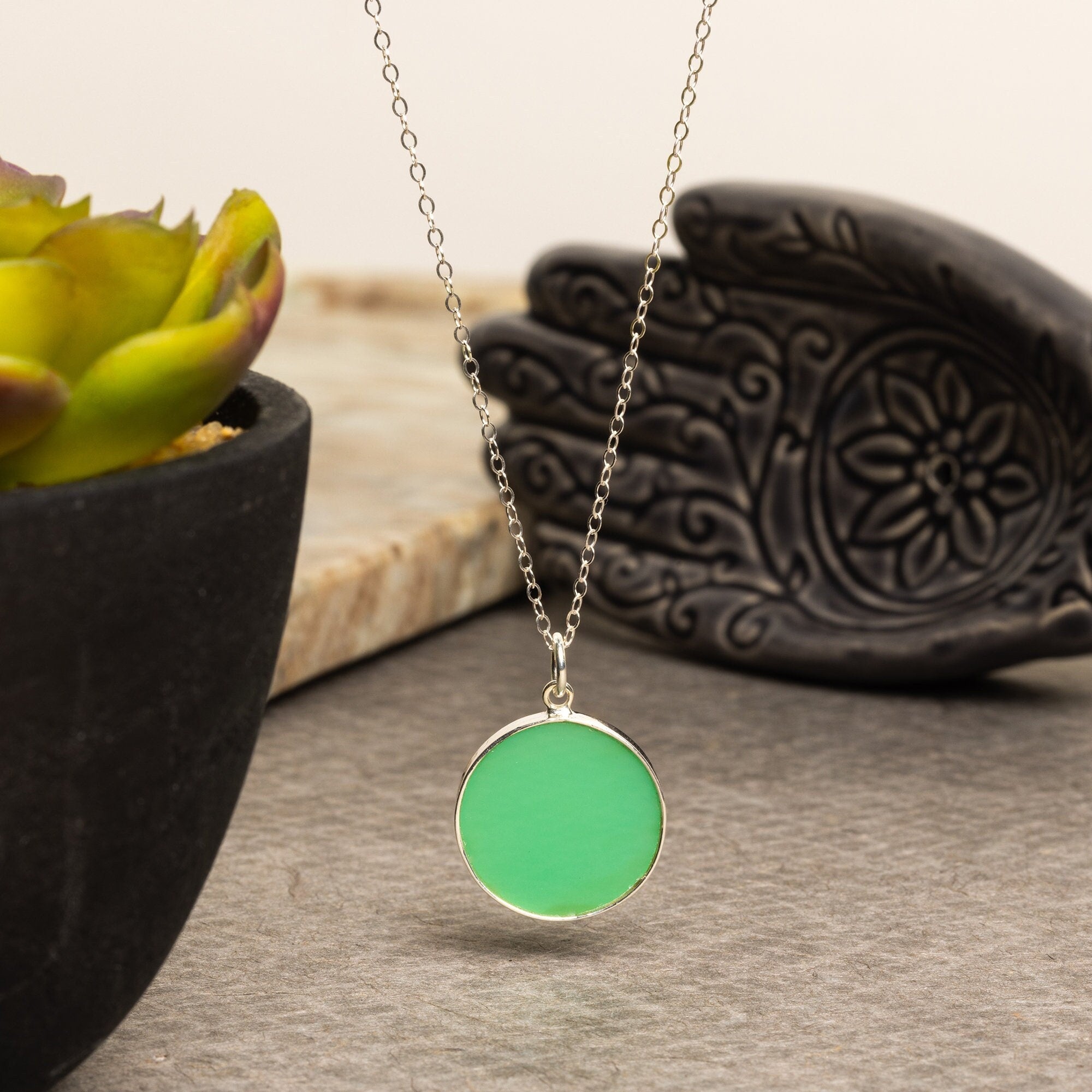 Chrysoprase Necklace in 925 Sterling Silver Cable Chain - Dainty, minimalist handmade jewelry gifts for mom, nana, aunt, cousin, wife