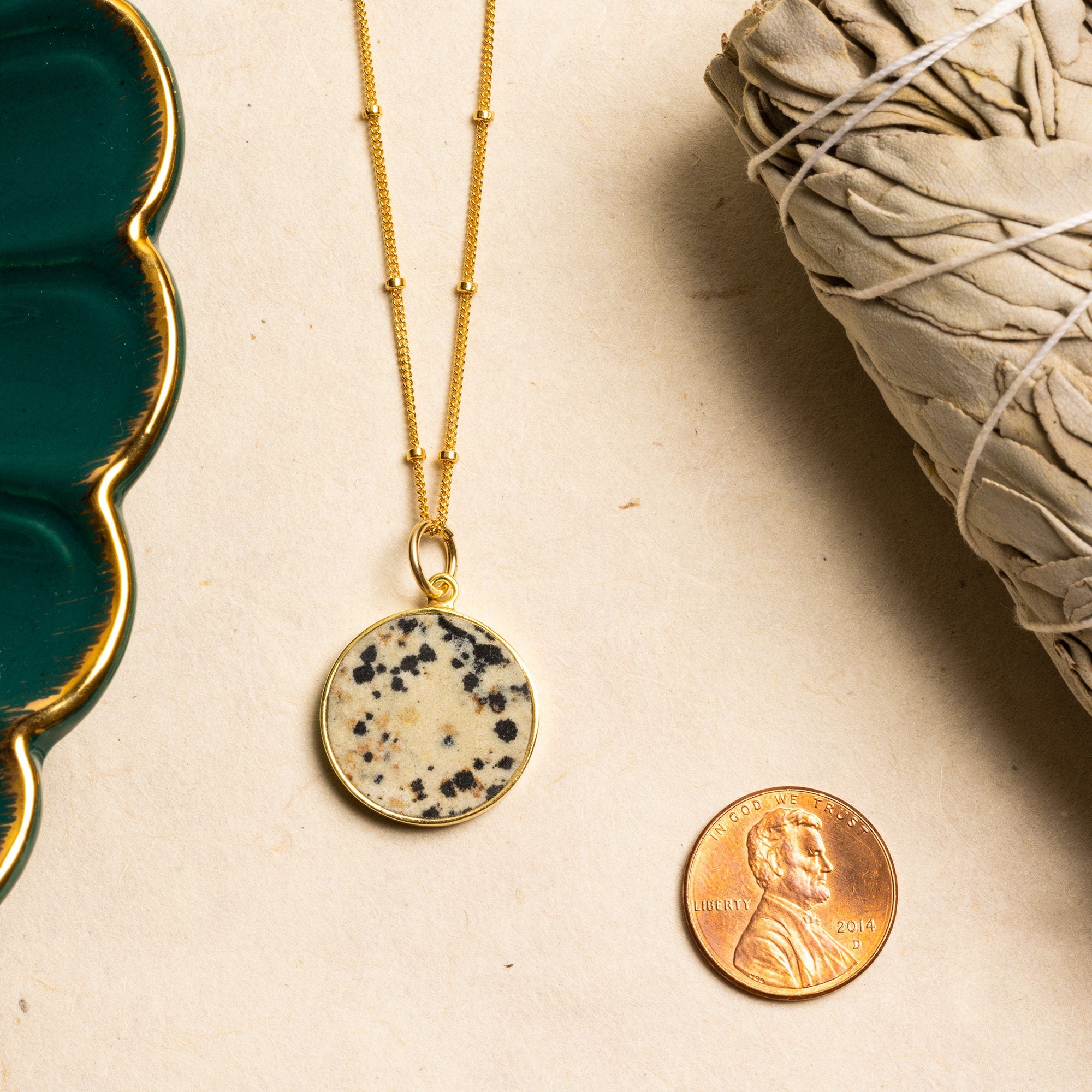 Dalmatian Jasper Gold Disc Necklace (Satellite Chain)
