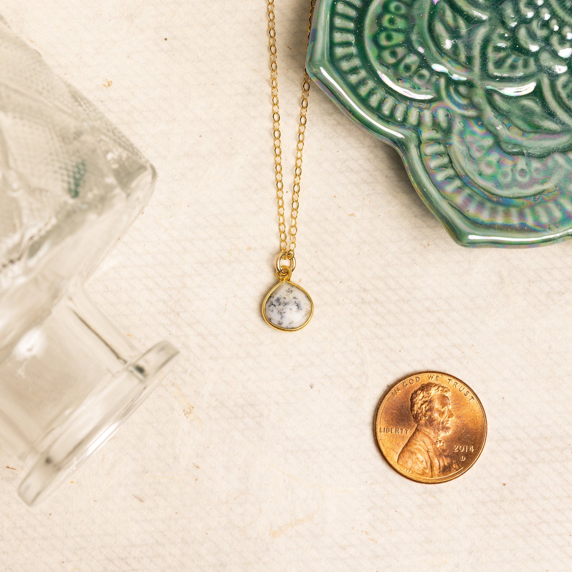 Dendrite Opal Teardrop Gemstone Necklace - Delicate, minimalist, chic, gold cable chain necklace - Gifts for her, wife, girlfriend, sister