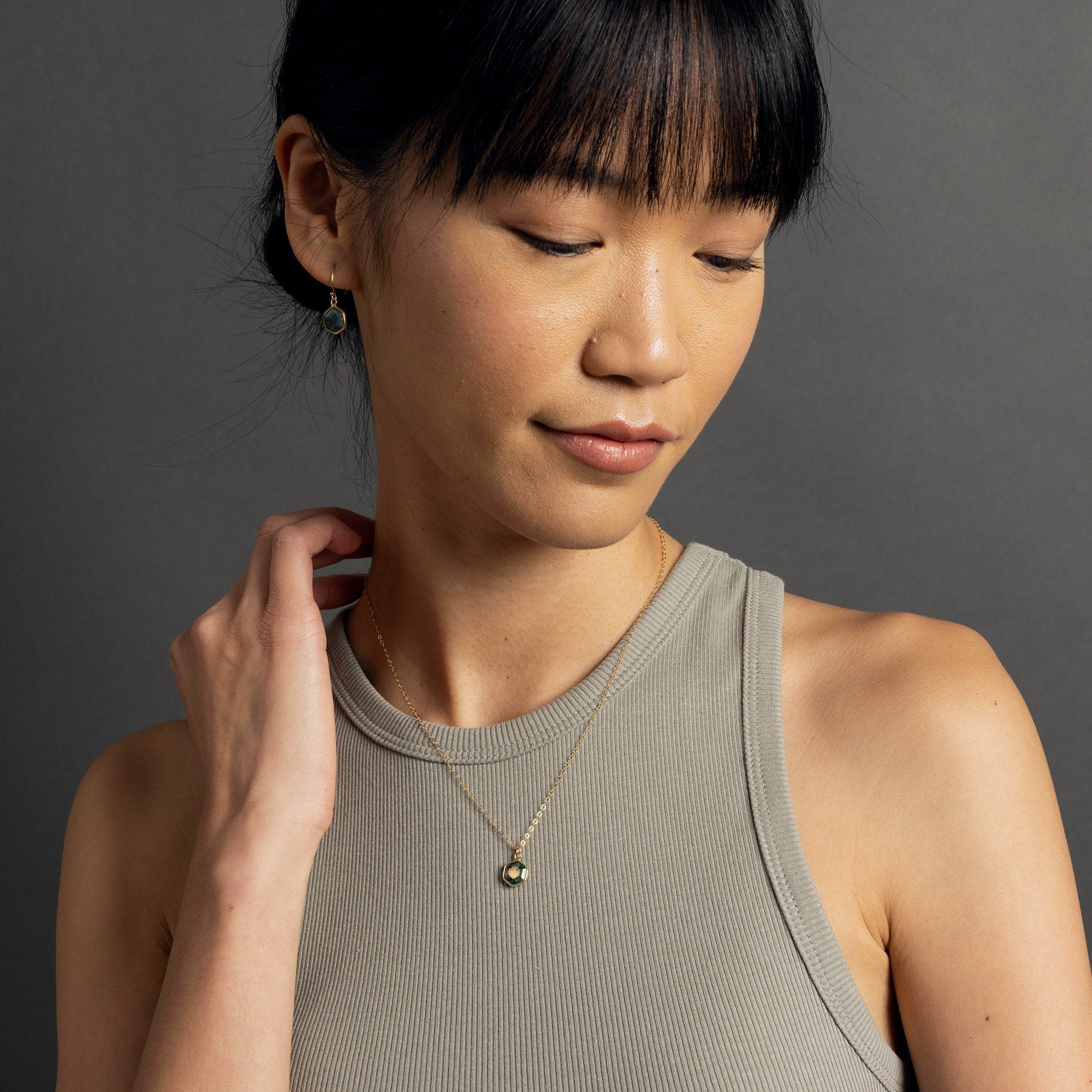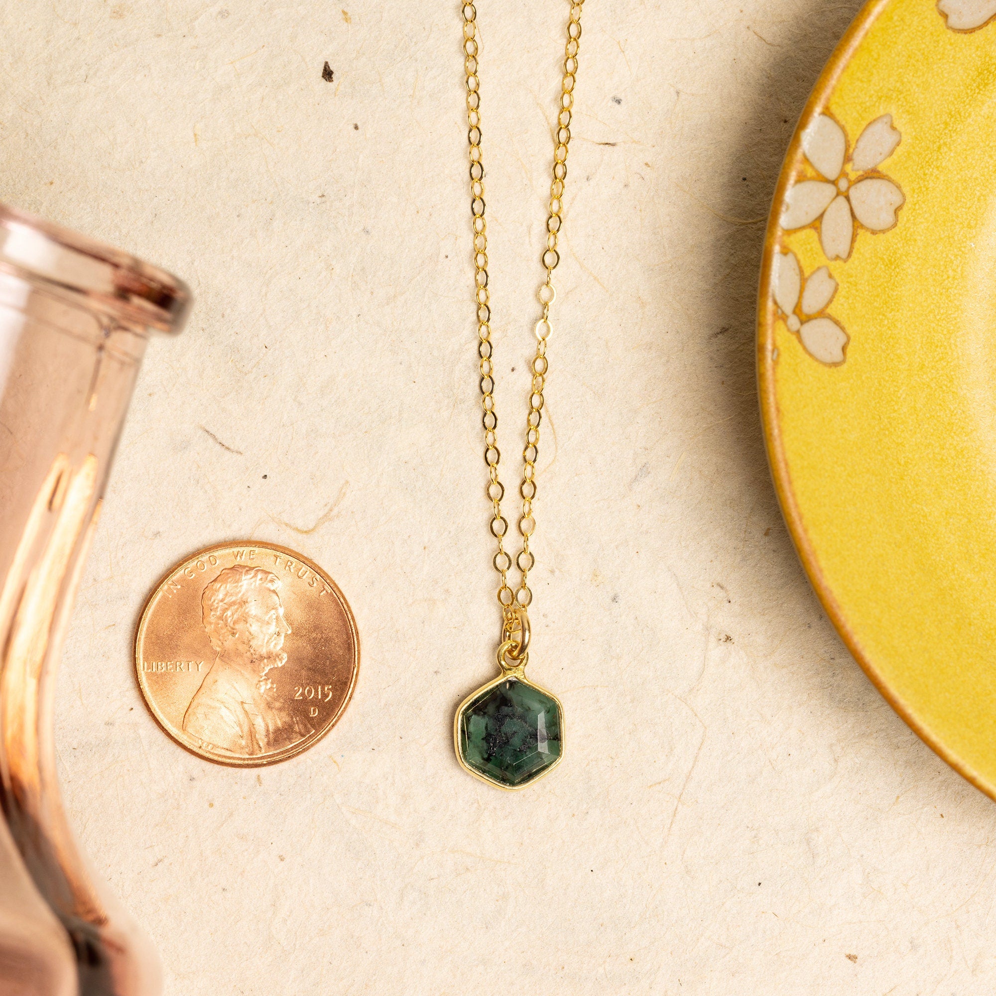 Emerald Dainty Hexagon Pendant Necklace - 14k Gold Filled, geometric, minimalist jewelry gifts for her, mom, girlfriend, sister, best friend