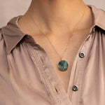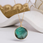 Emerald Pendant Necklace - Large Circle Raw Emerald Gemstone Circle Charm on 14k Gold Filled Cable Chain 16-18in adjustable - Gifts for her