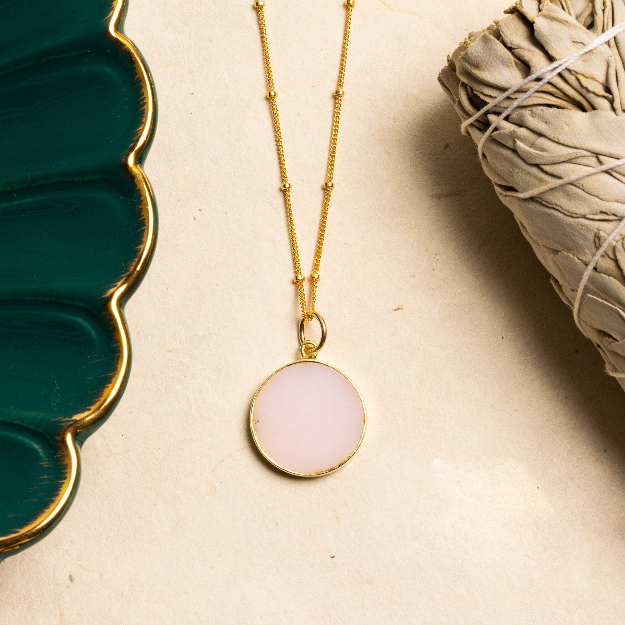 Pink Opal Gold Disc Pendant Necklace (Satellite Chain)