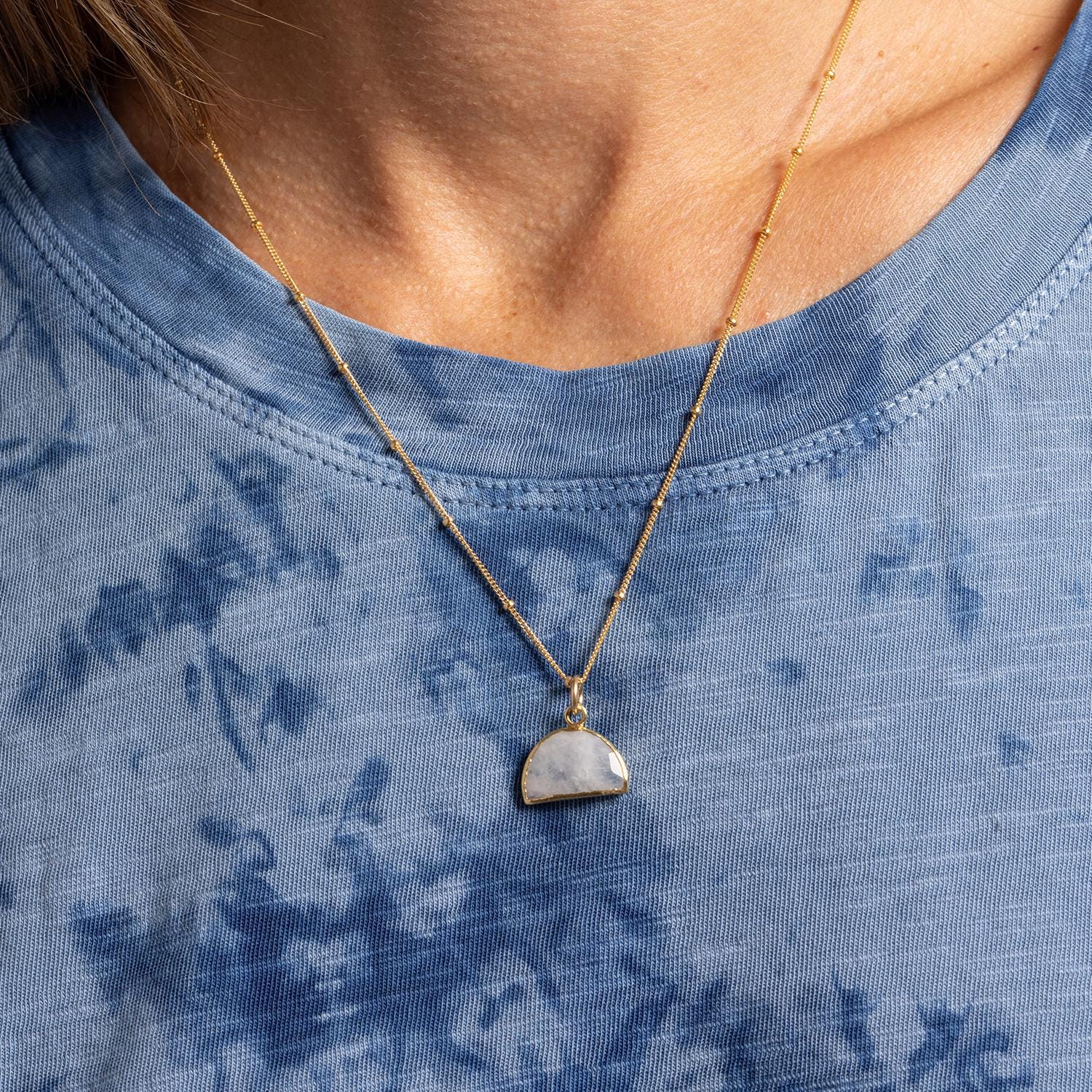 Gold Minimalist Half-Circle Moonstone Pendant 14k Gold Filled