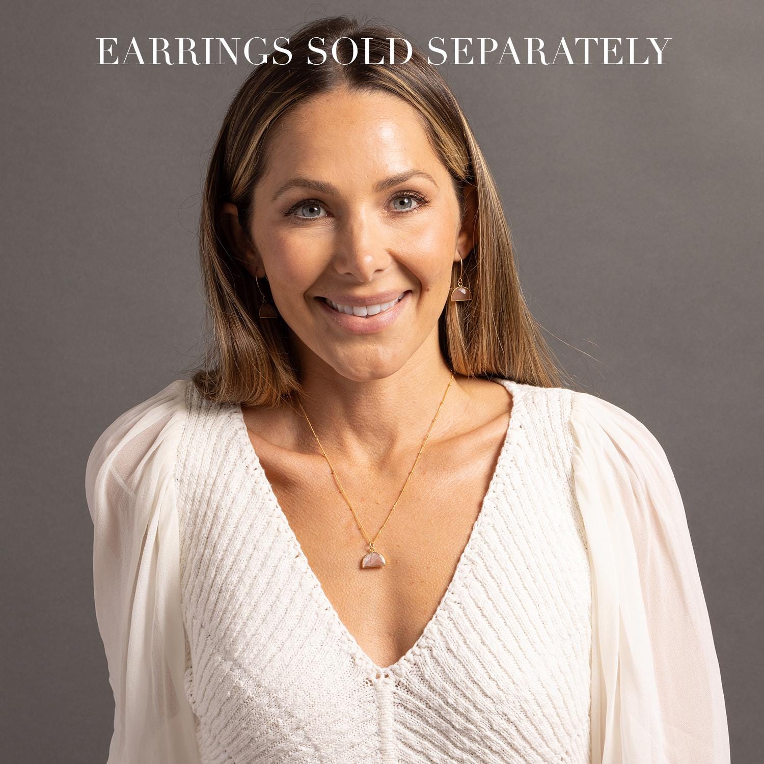 Gold Peach Moonstone Half Circle Shape Pendant Necklace
