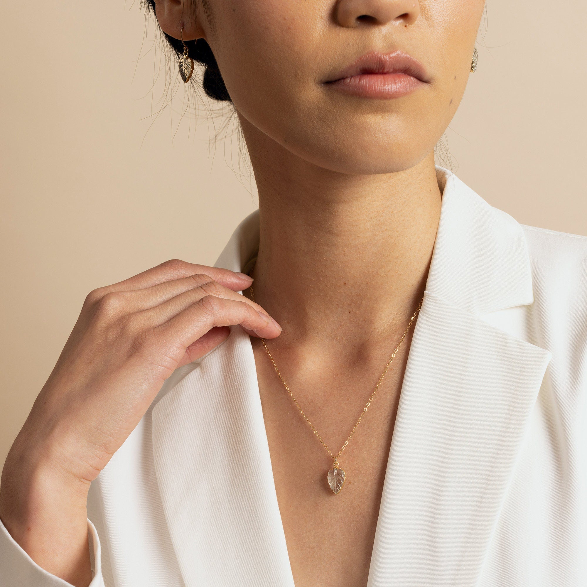 Green Amethyst Leaf Gemstone Gold Pendant Necklace