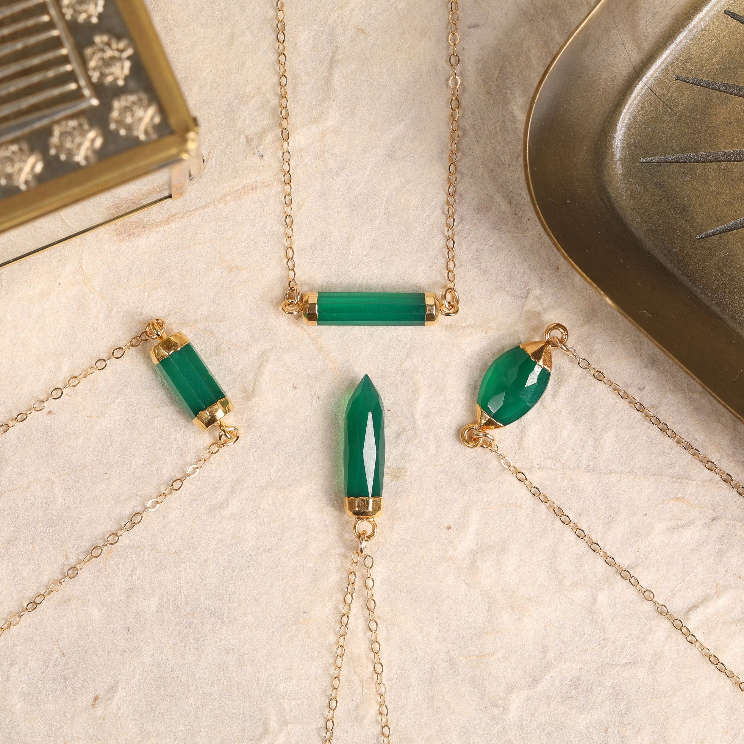 Green Onyx Necklace Collection • Green onyx necklaces on 14k dainty gold chain • Natural green onyx • Elegant necklaces • Jewelry gifts for her