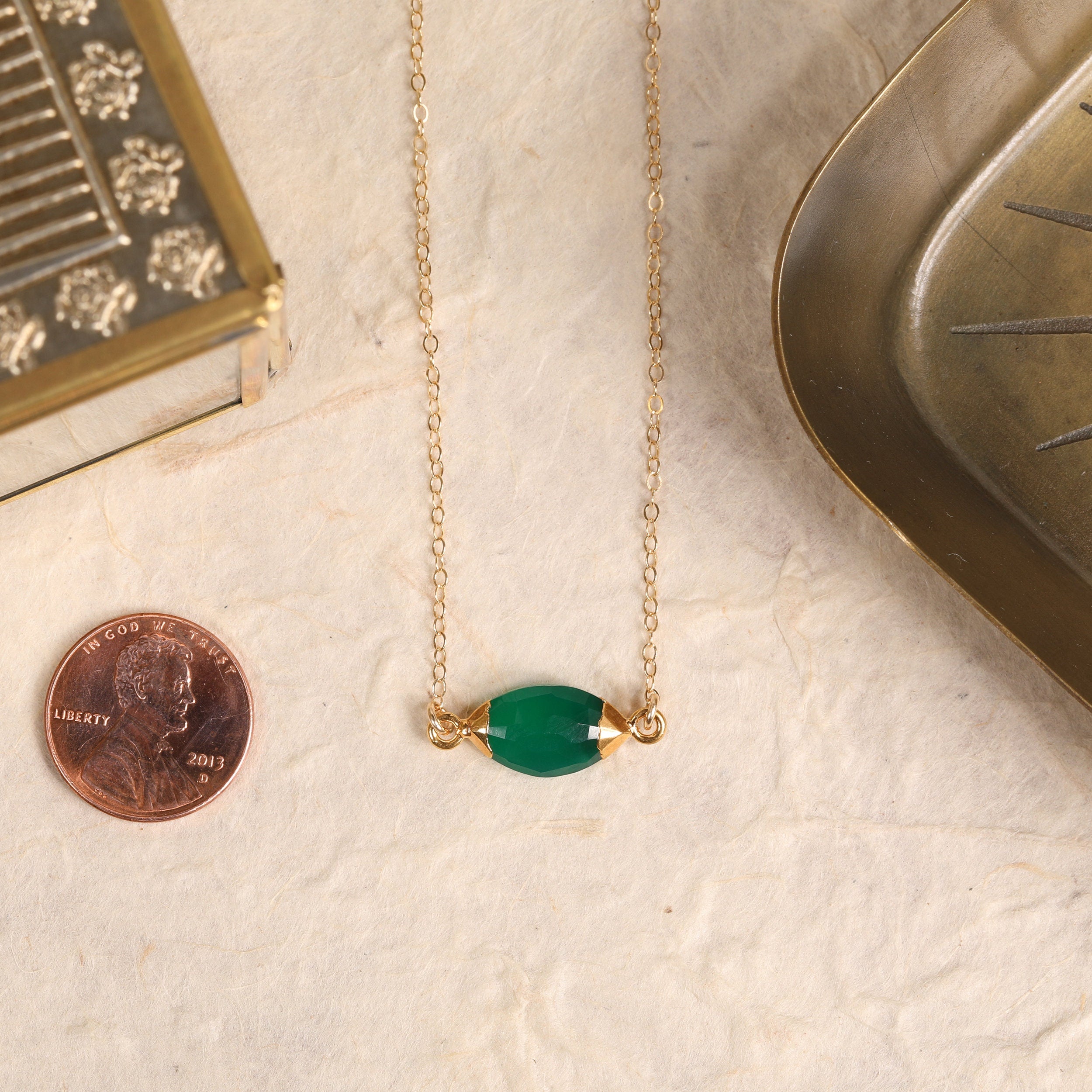 Green onyx necklace on 14k dainty gold chain • Oval pillow cut natural faceted green onyx • Elegant necklace •Jewelry gifts for her