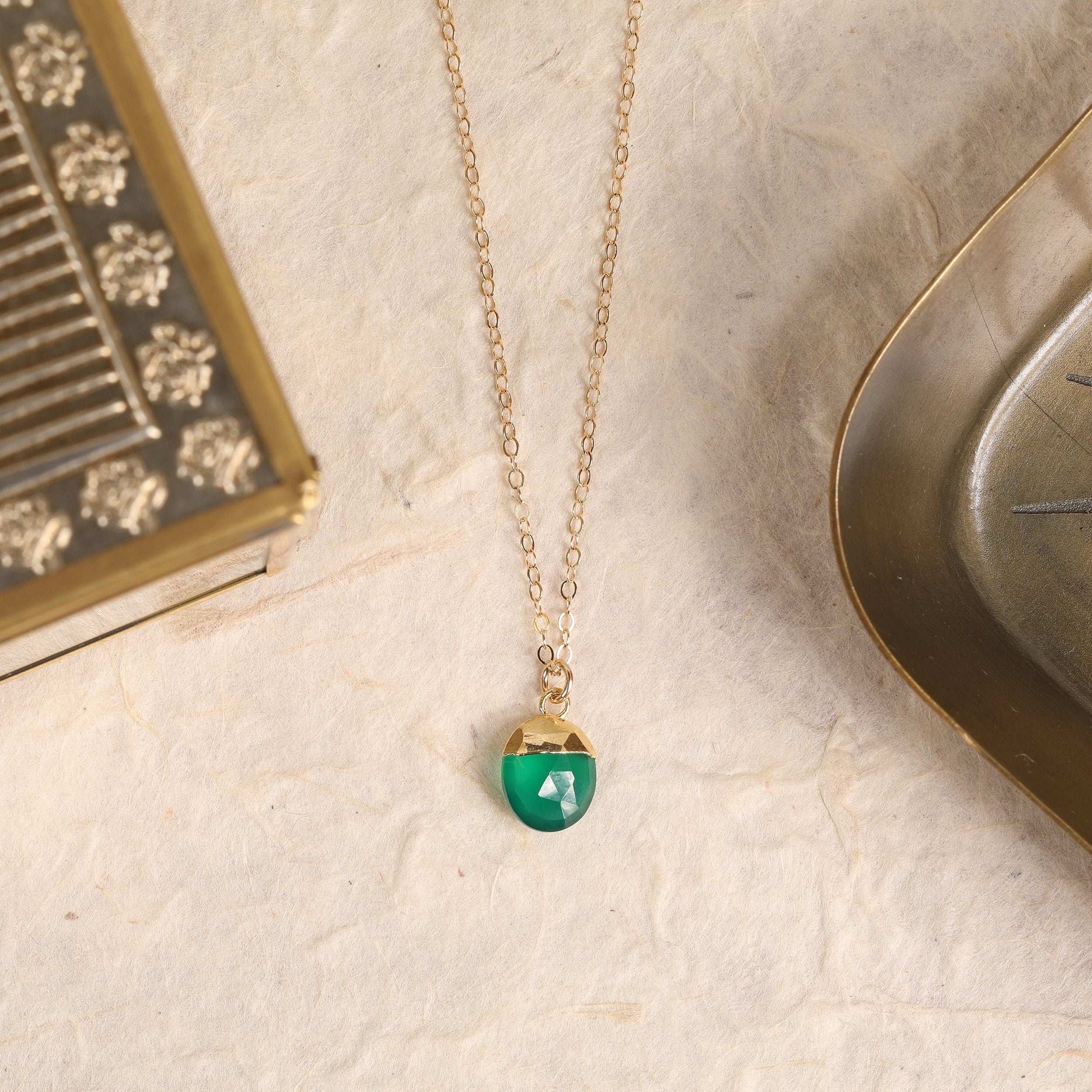Green Onyx Nugget necklace • Green onyx necklace on 14k dainty gold chain Natural faceted green onyx • Elegant necklace • Jewelry gift for her