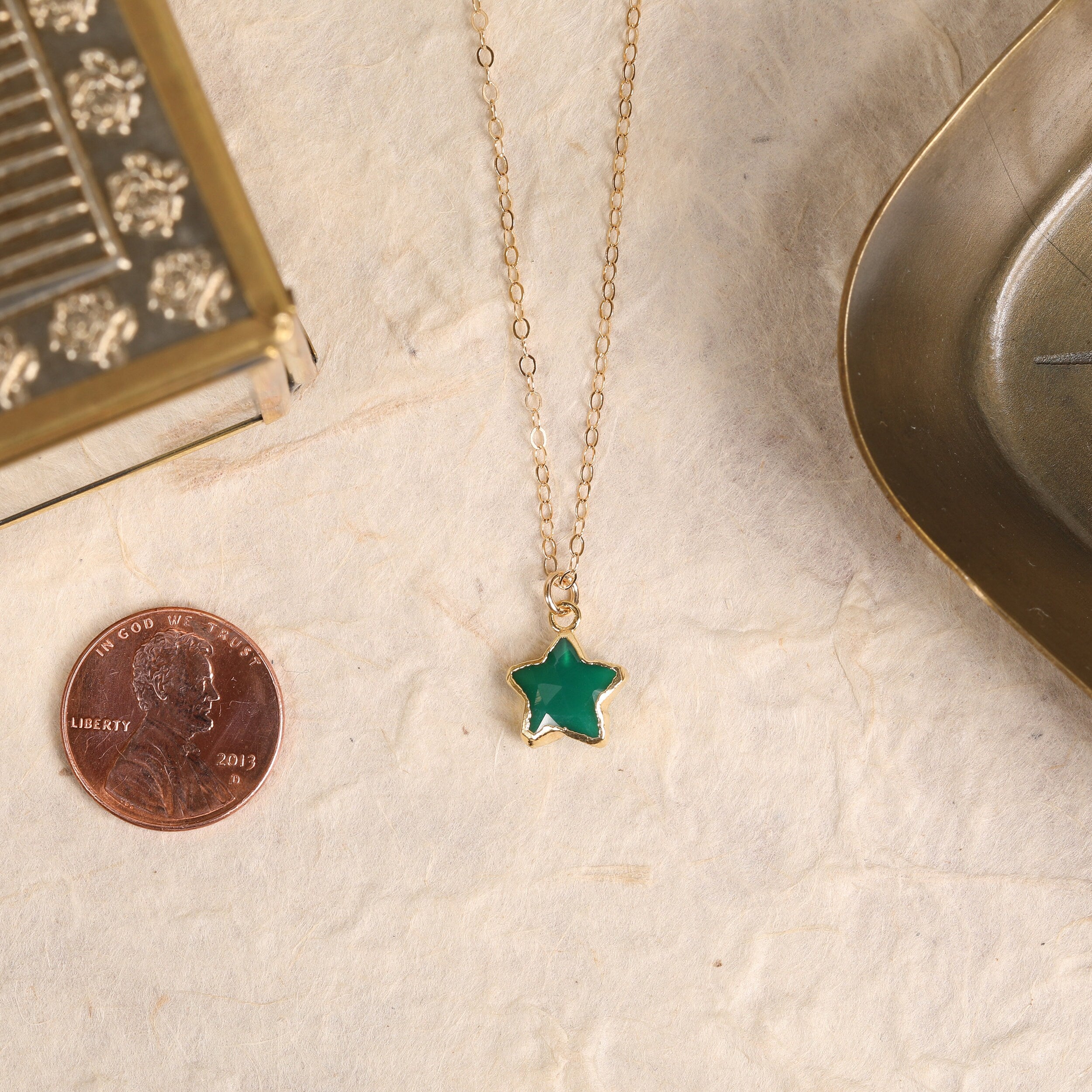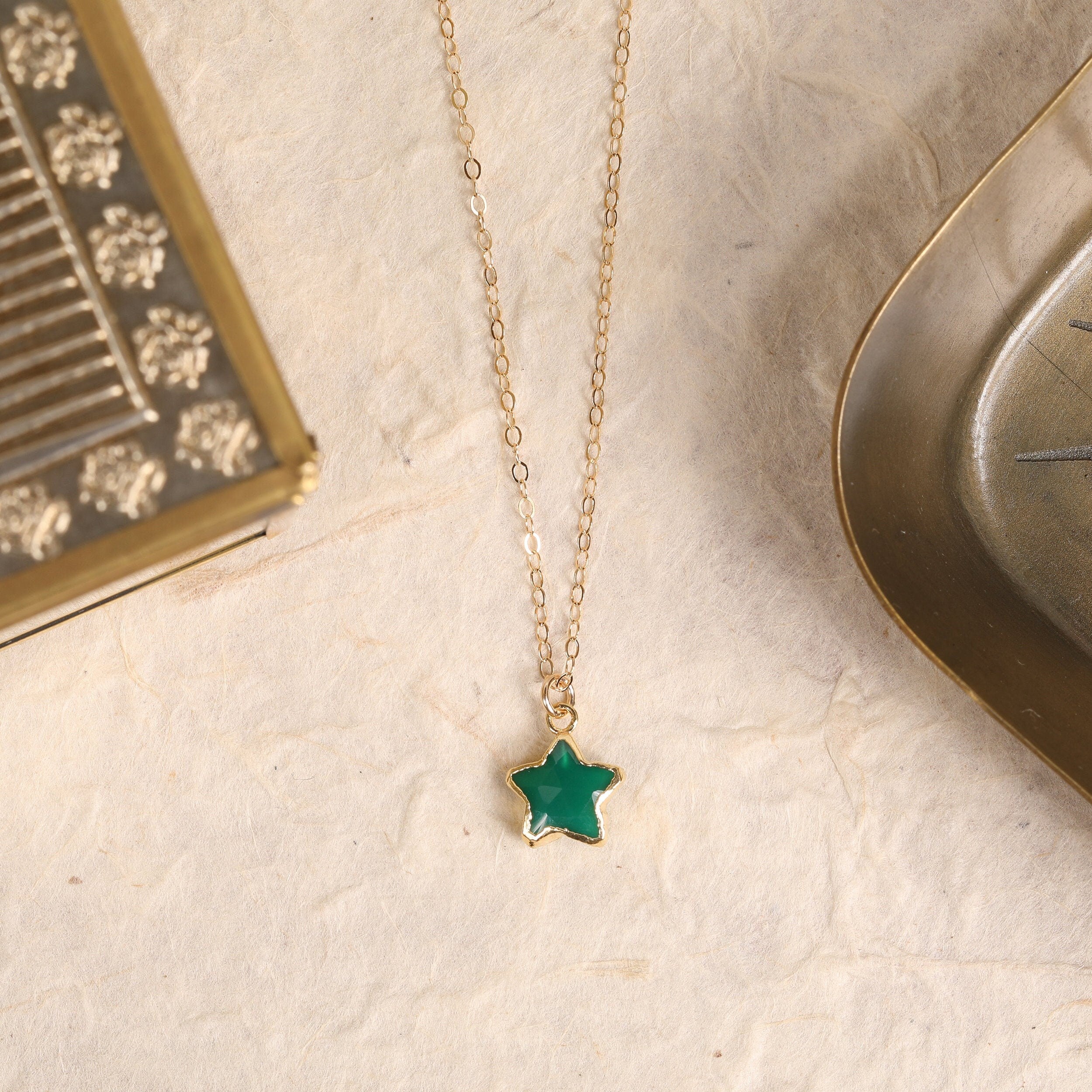 Green Onyx Moon necklace • Green onyx necklace on 14k dainty gold chain Natural faceted green onyx • Elegant necklace •Jewelry gift for her