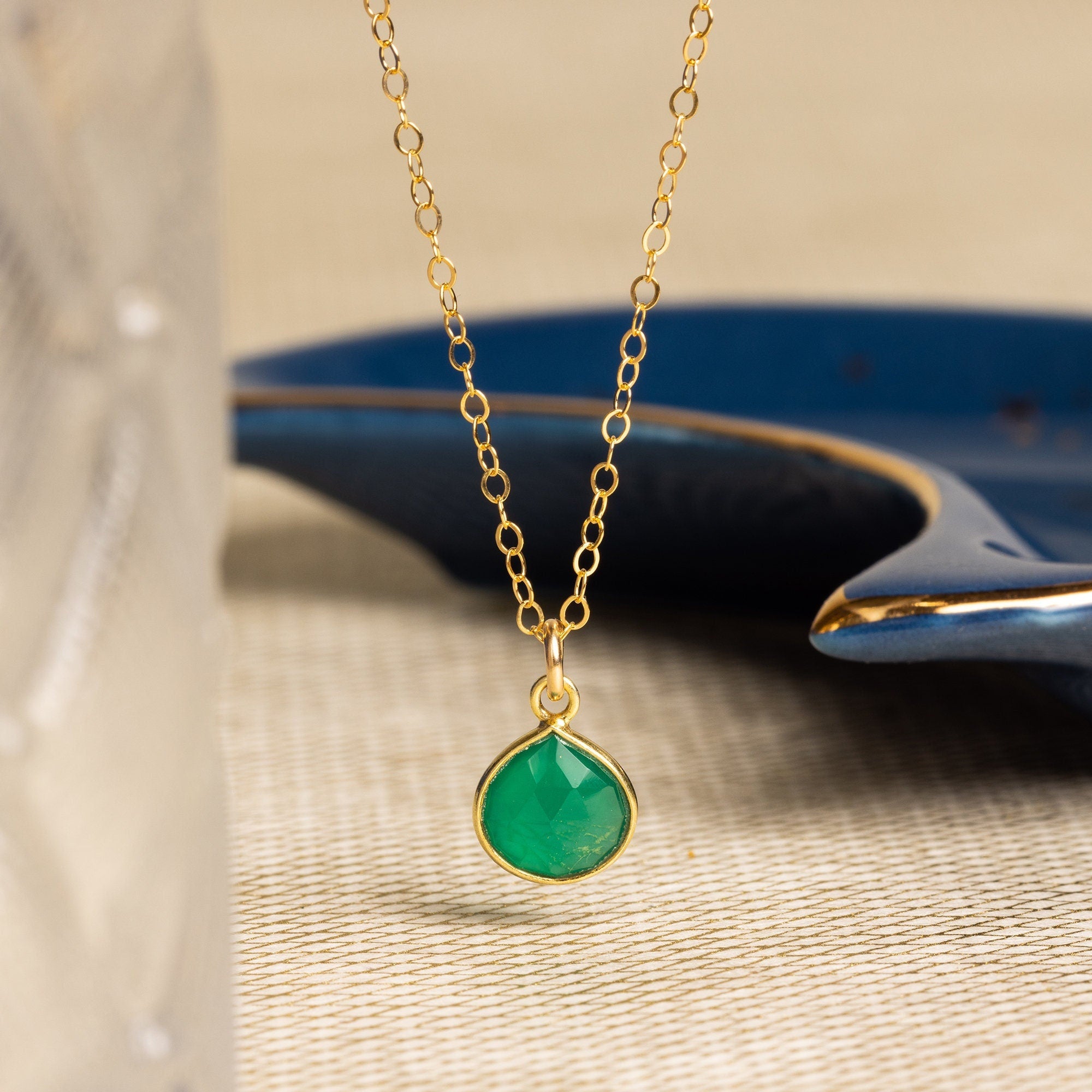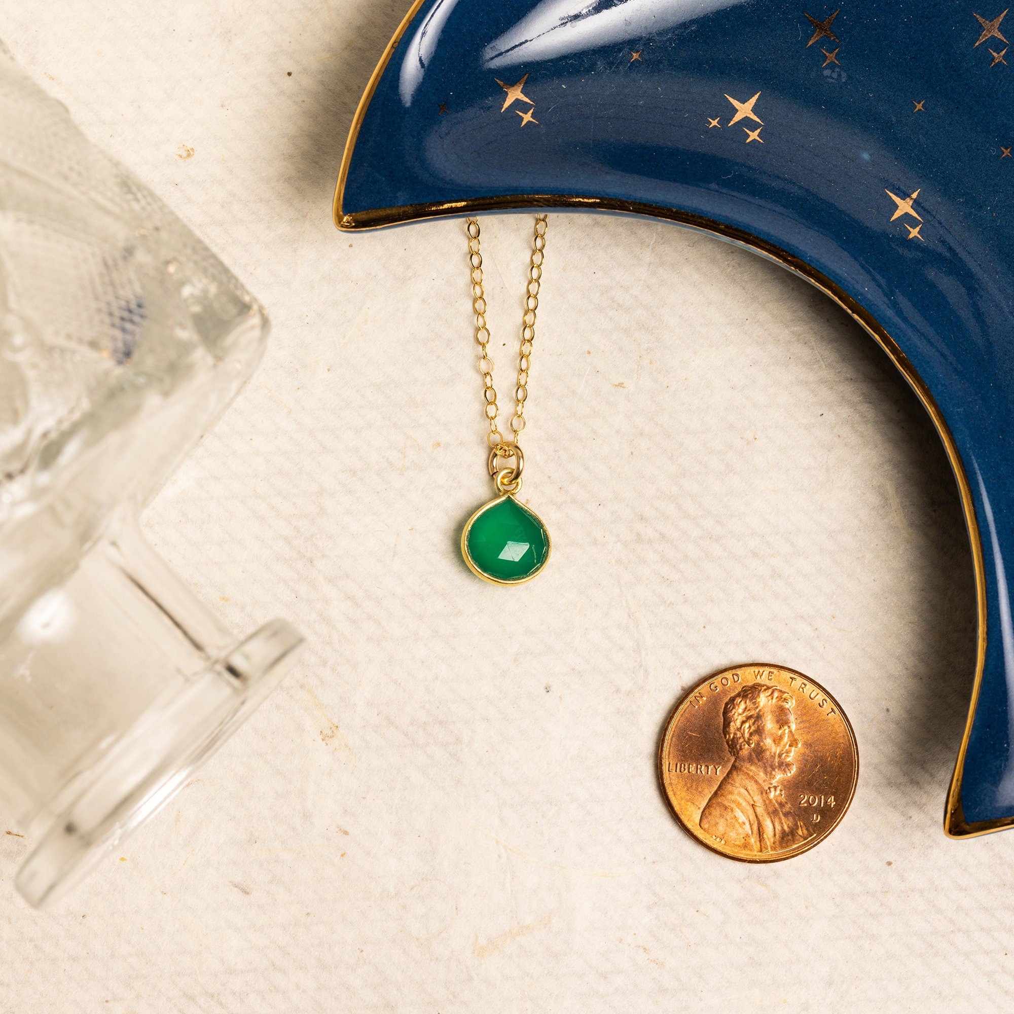 Green Onyx Teardrop Gemstone Necklace - Delicate, minimalist, chic, gold cable chain necklace - Gifts for her, wife, girlfriend, sister, mom