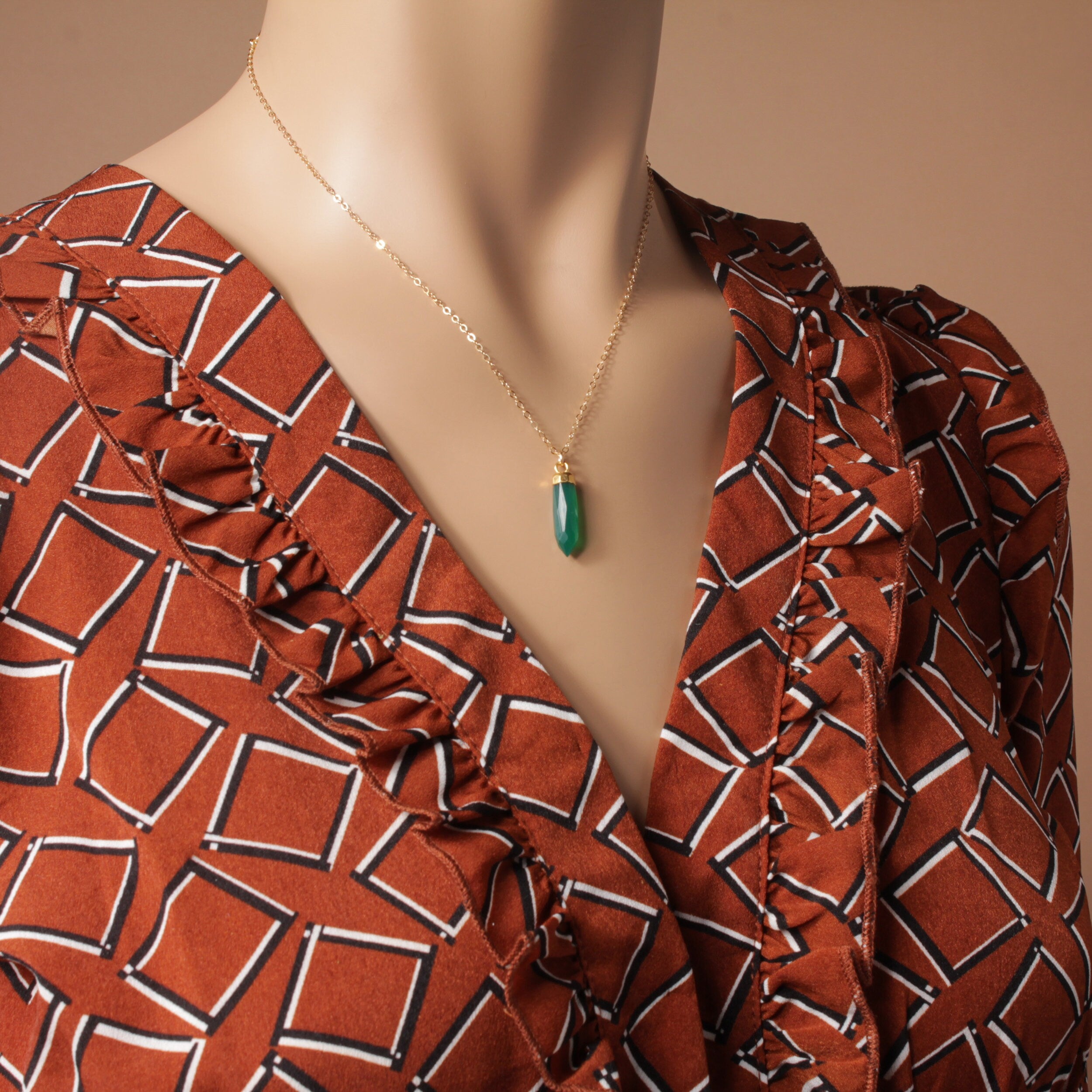 Green Onyx Point Gold Necklace