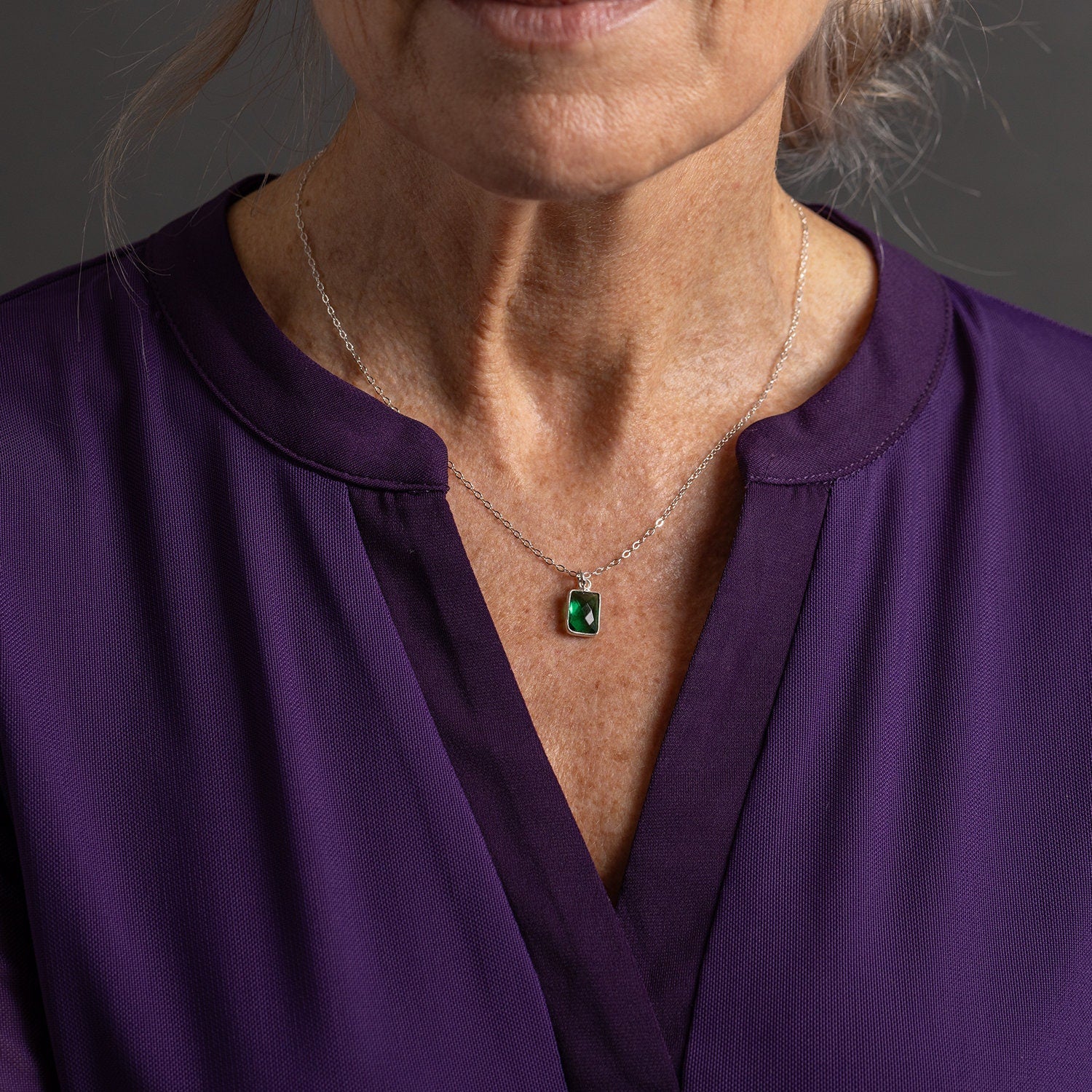 Green Quartz Pillow Shape 925 Sterling Silver Pendant Necklace - Minimalist, elegant, bright, delicate jewelry gifts for her, mom, bride