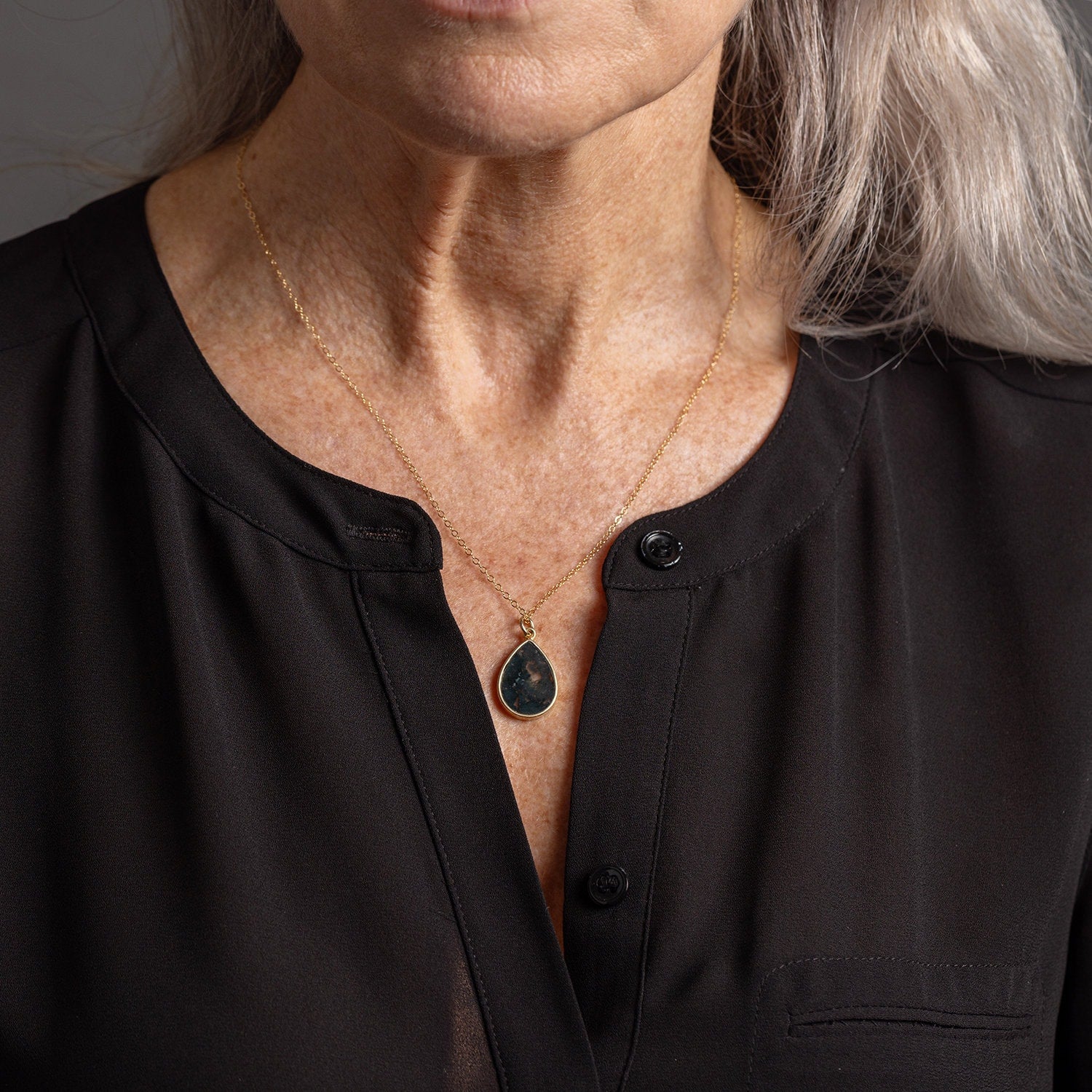 Moss Agate Drop Pendant Necklace - 14k Gold Filled Delicate chain Vermeil Gold Bezel - Jewelry gifts for bridesmaids, mom, wife, girlfriend