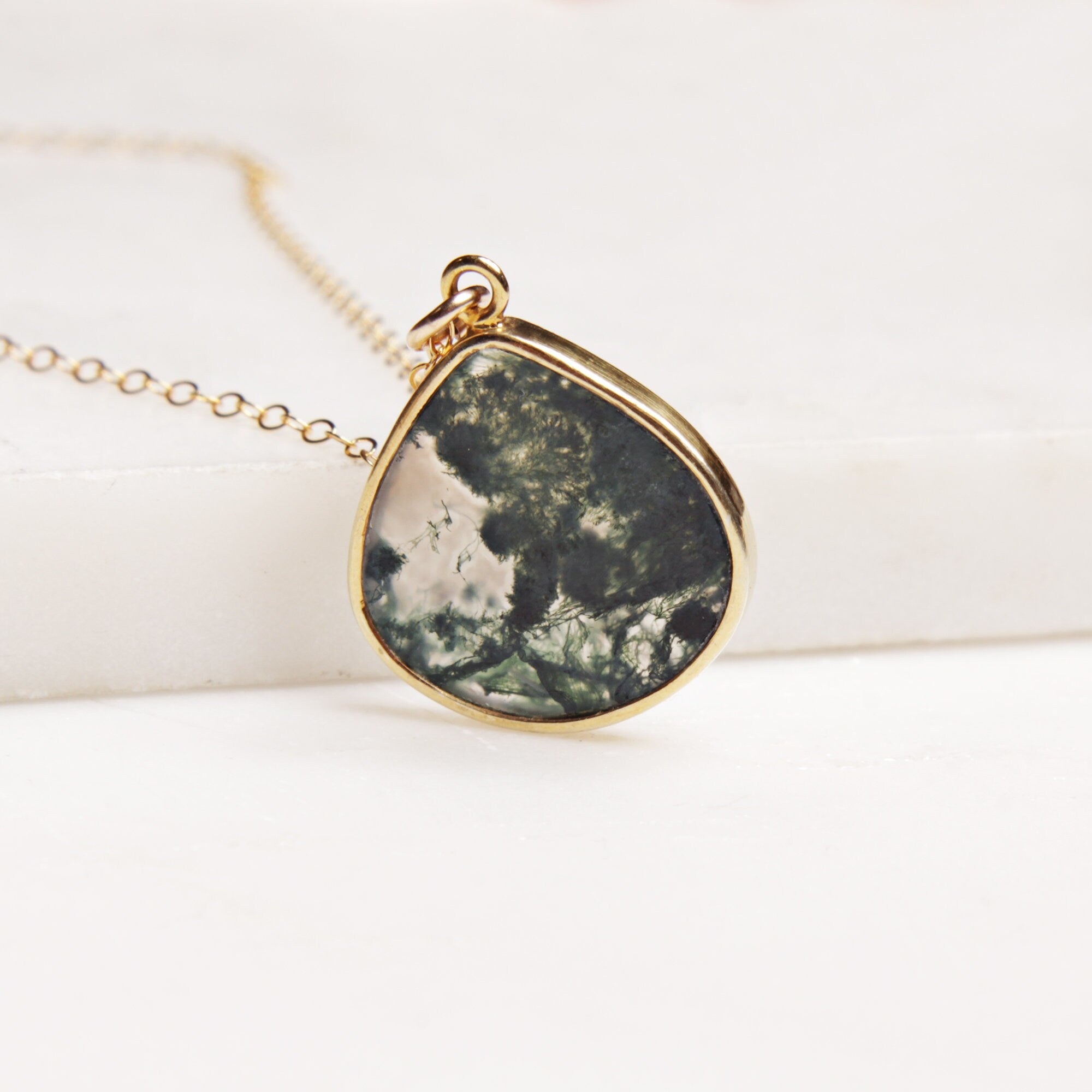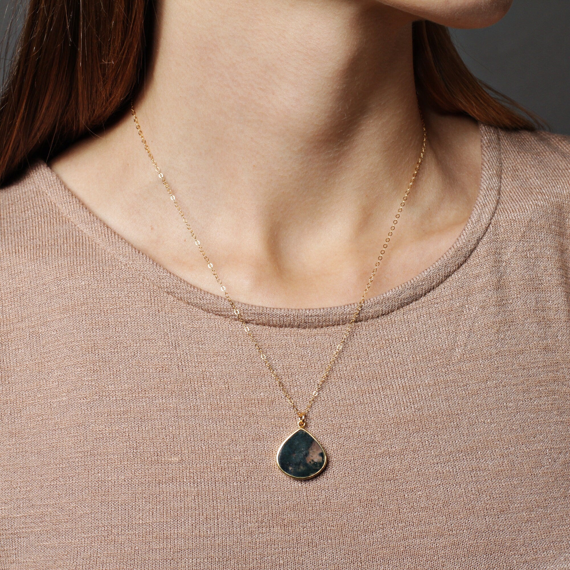 Moss agate drop pendant necklace on 14k gold filled dainty chain / Moss jewelry / Unique jewelry gifts for her / Gold jewelry and pendants