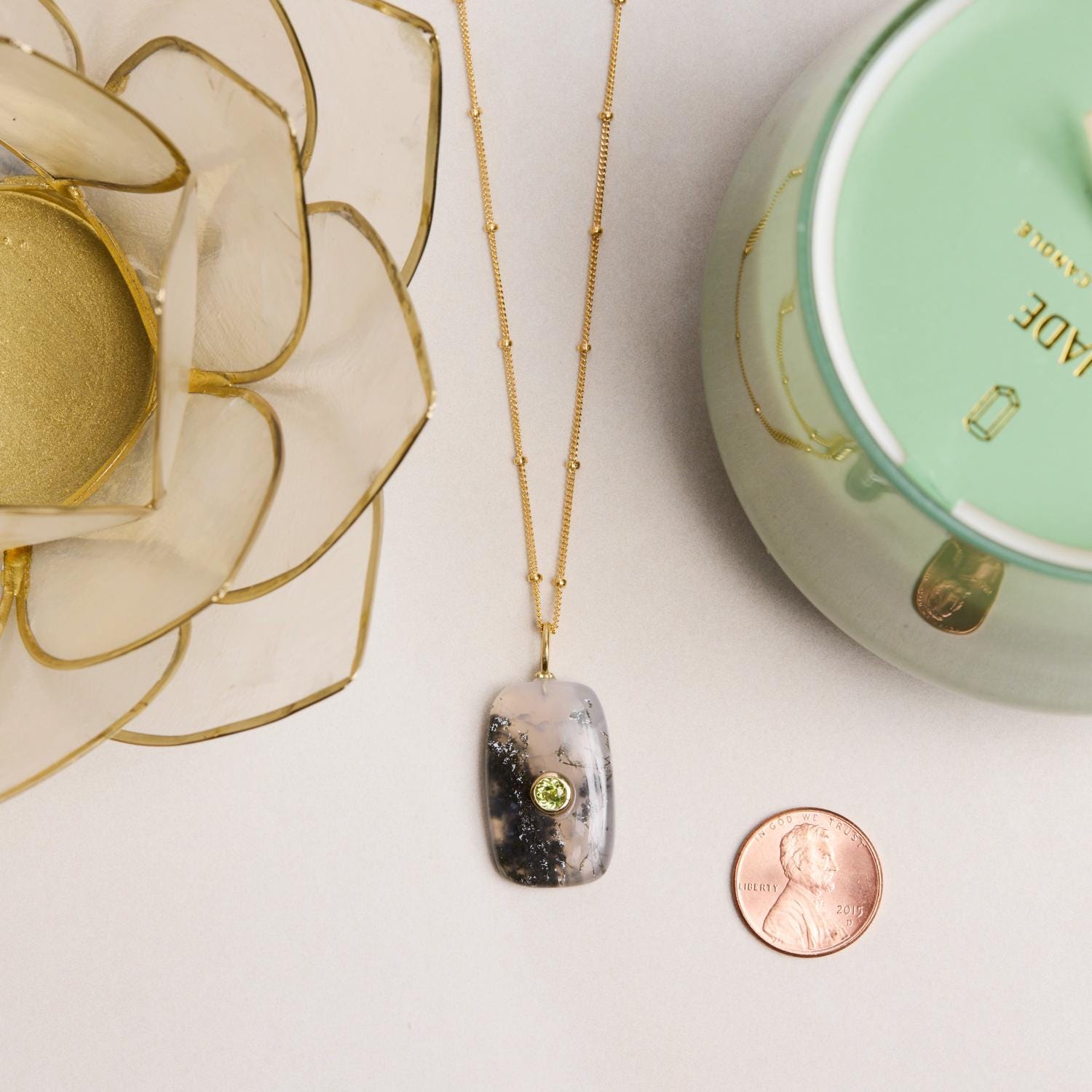 Moss Agate and Peridot Pendant 14k Gold Filled Chain Necklace