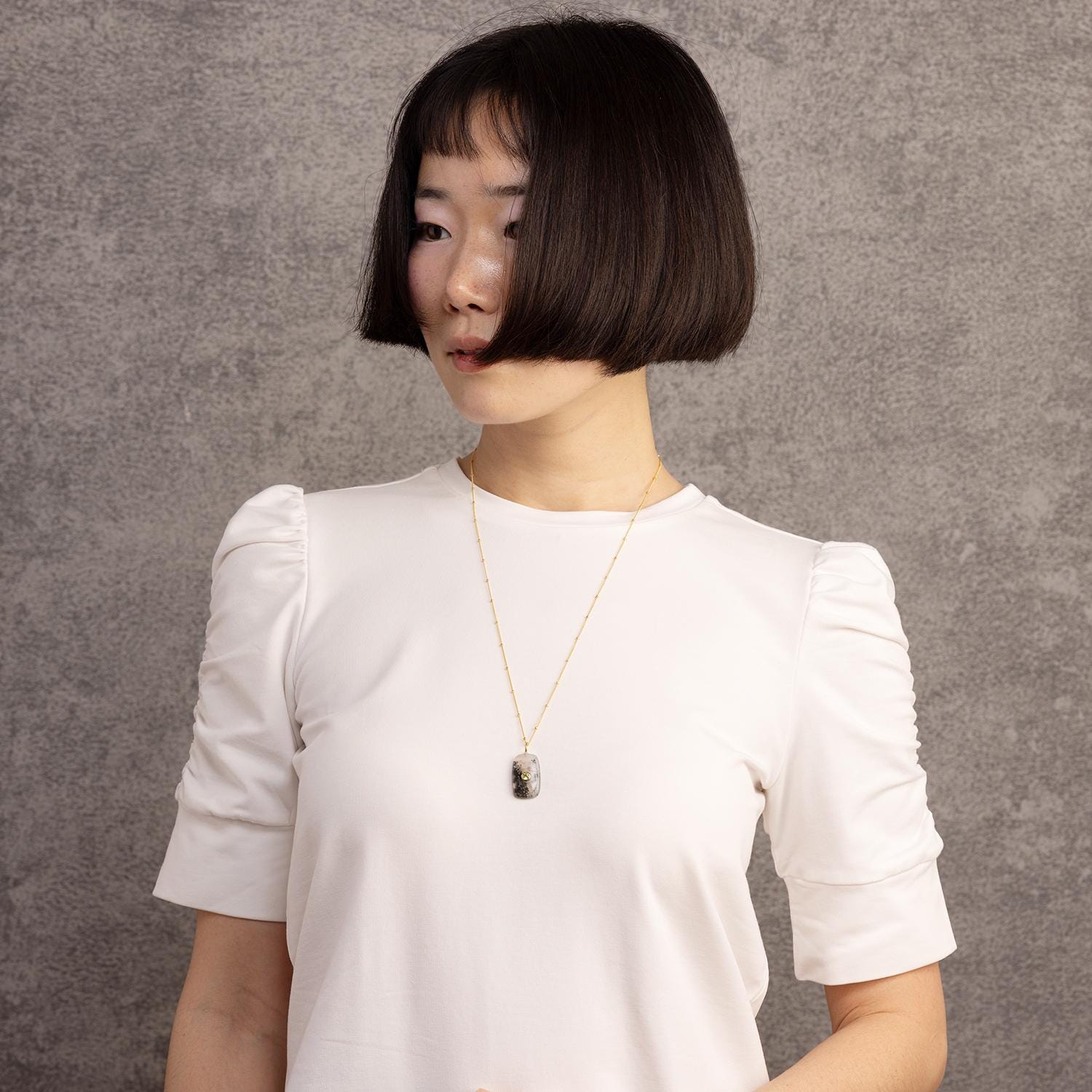 Moss Agate Gold Pendant Chain Necklace - Long or short Satellite Chain Layering Necklace - Gold jewelry gifts for wife, mom, sister, friend