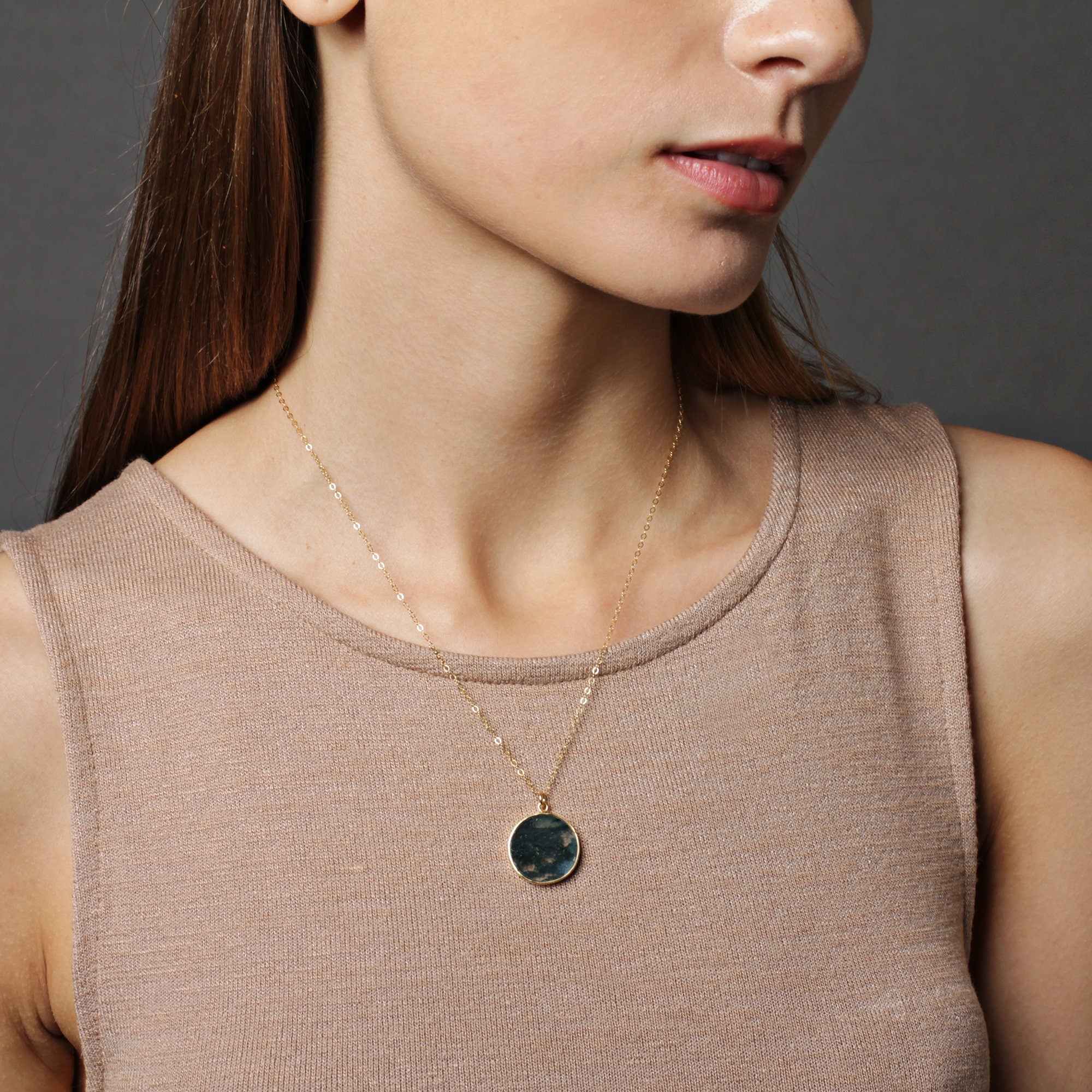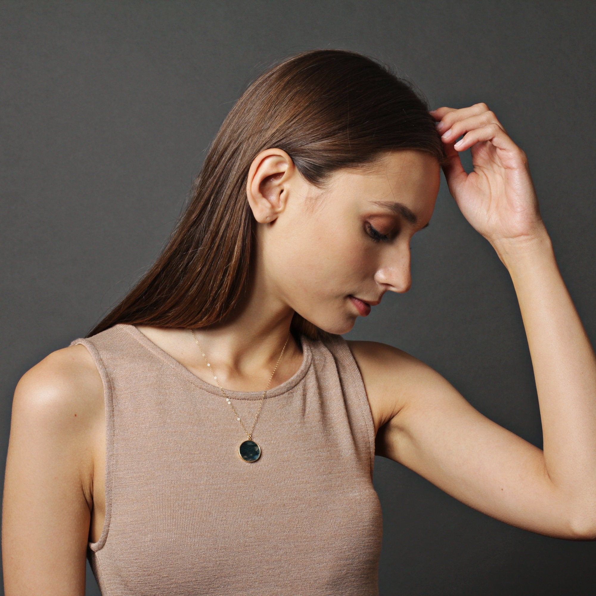 Moss agate round pendant necklace on 14k gold filled dainty chain / Moss jewelry / Unique jewelry gifts for her / Gold jewelry and pendants