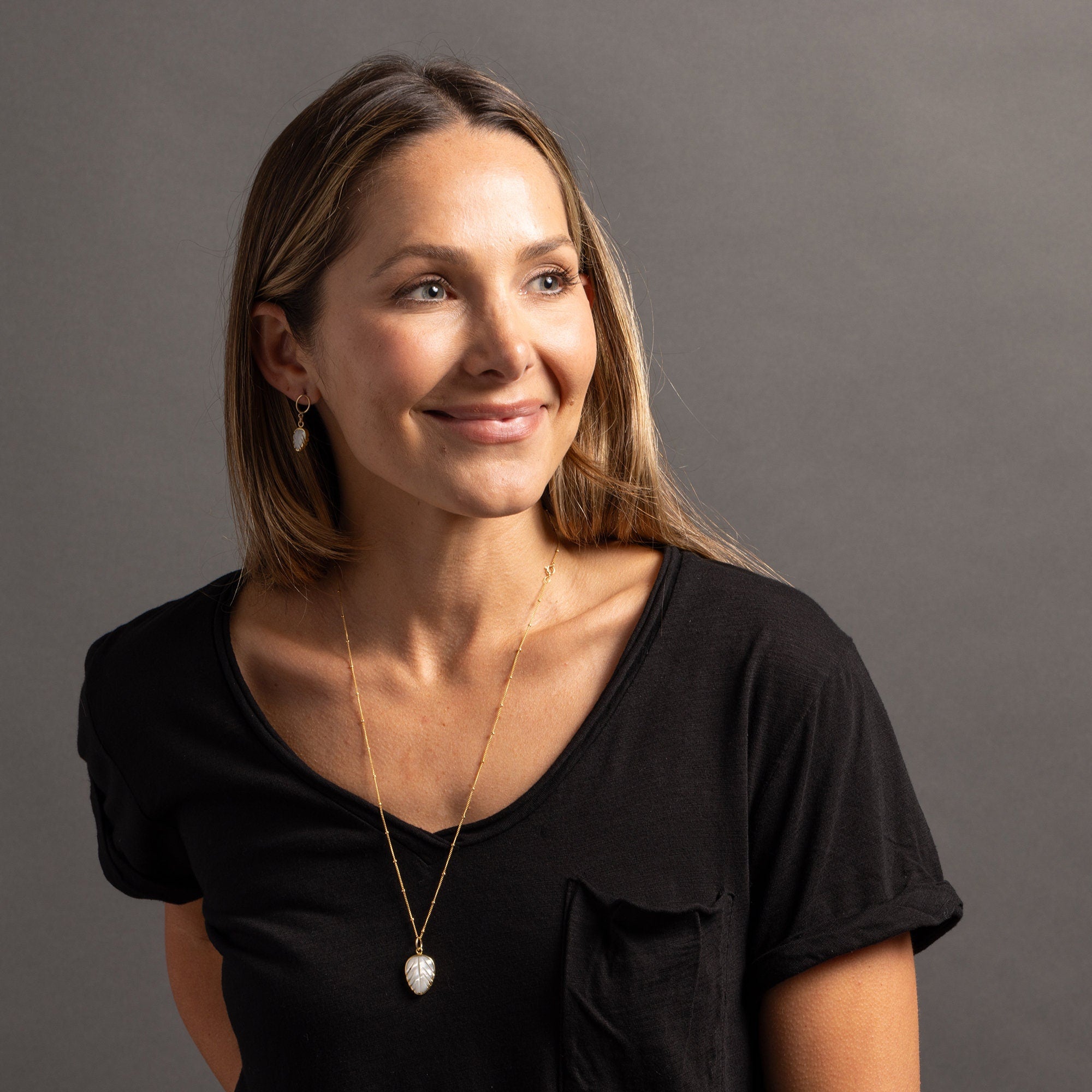Gold Mother of Pearl Leaf Pendant Necklace
