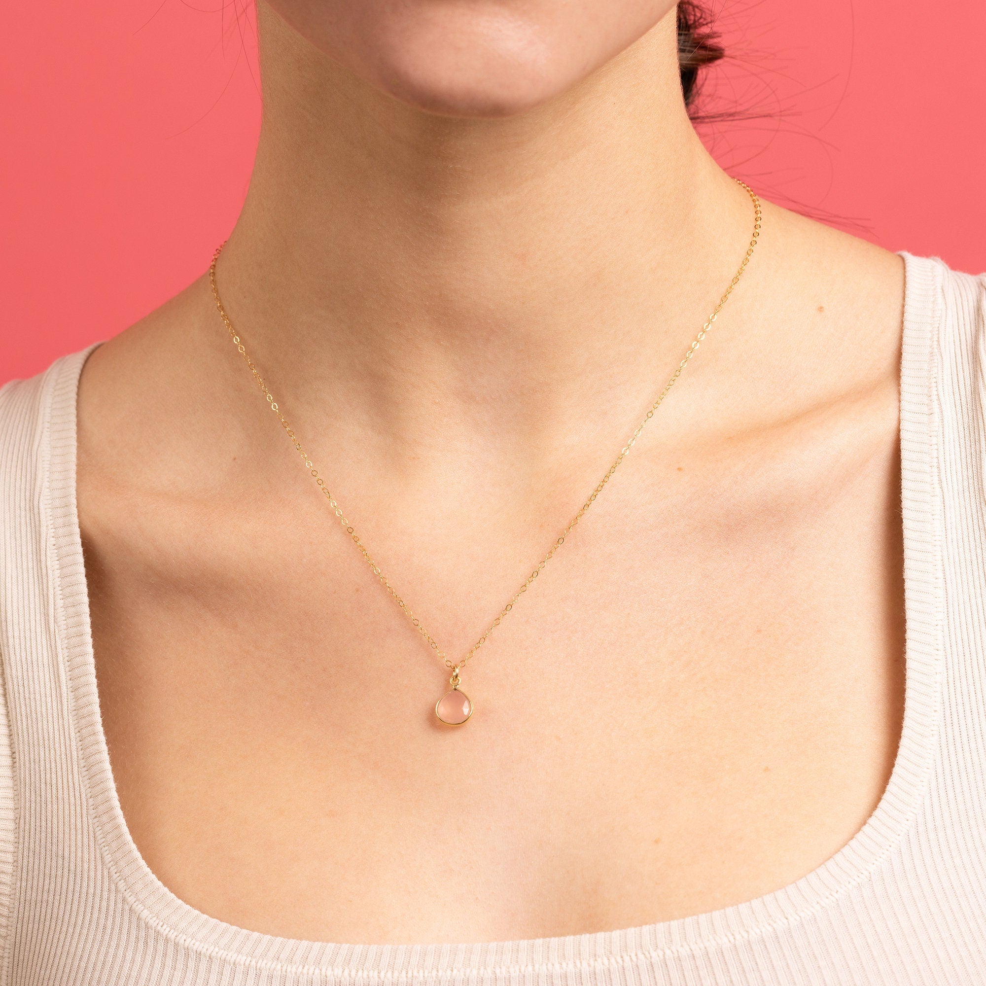 Pink Chalcedony Teardrop Pendant Gemstone Gold Necklace - Birthday, Graduation, Bridesmaid, handmade jewelry gift for Women, Daughter, BFF