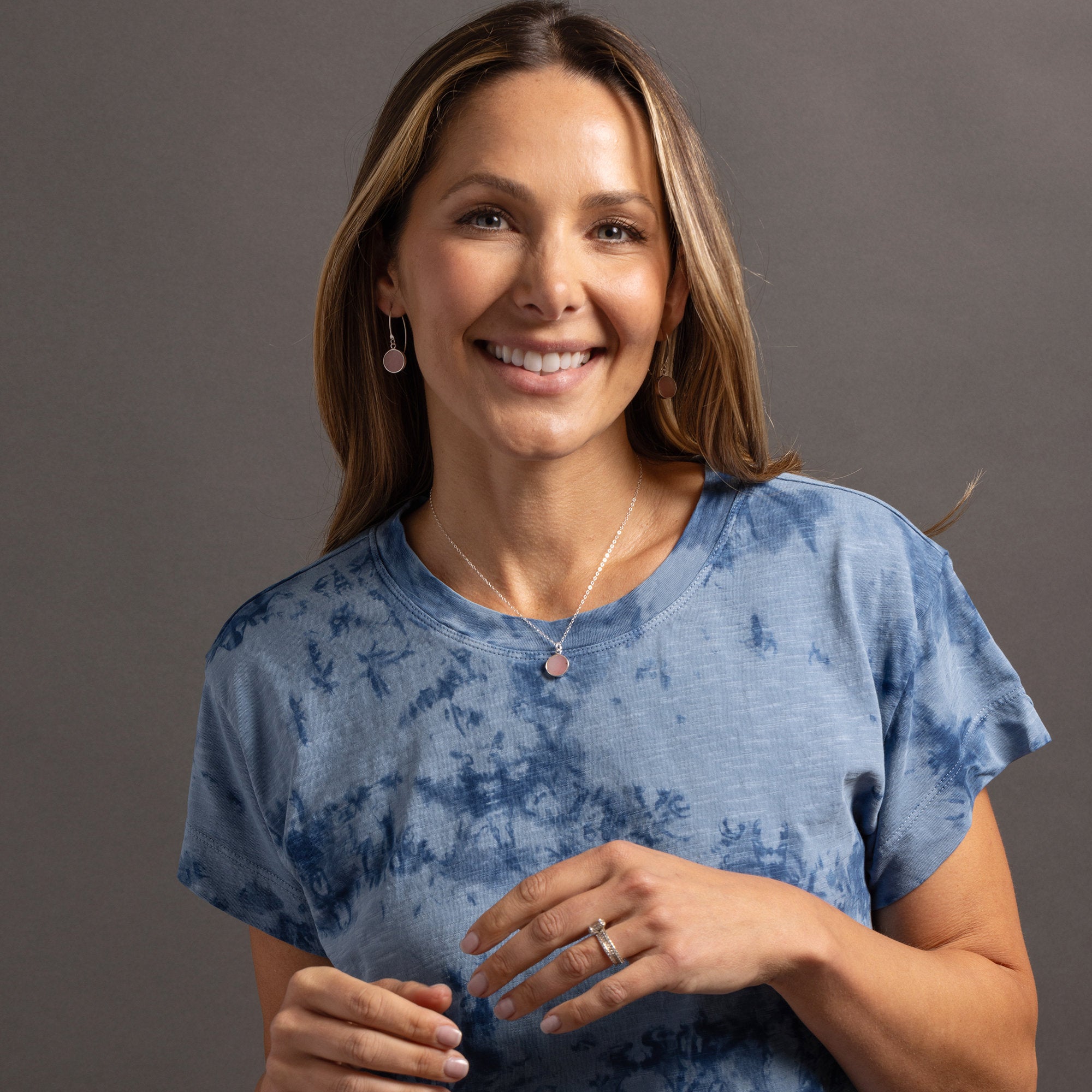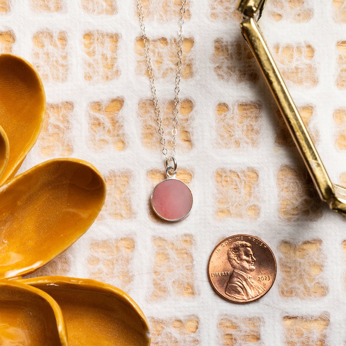 Pink Opal 925 Sterling Silver Circle Shape Pendant on Dainty Cable Chain Jewelry Gifts for Mom, wife, sister, handmade gemstone necklace