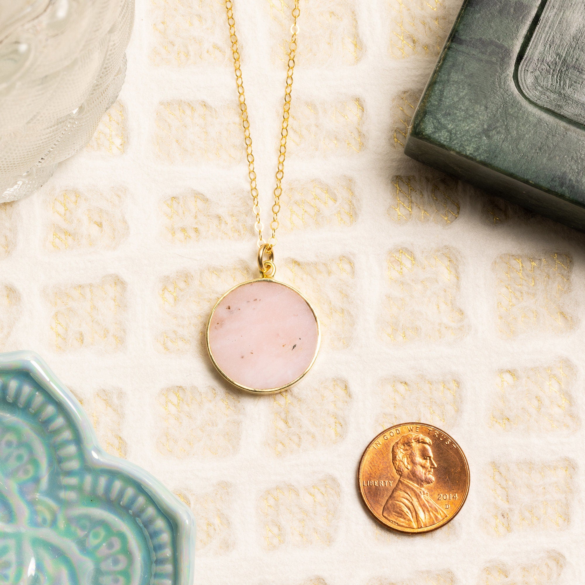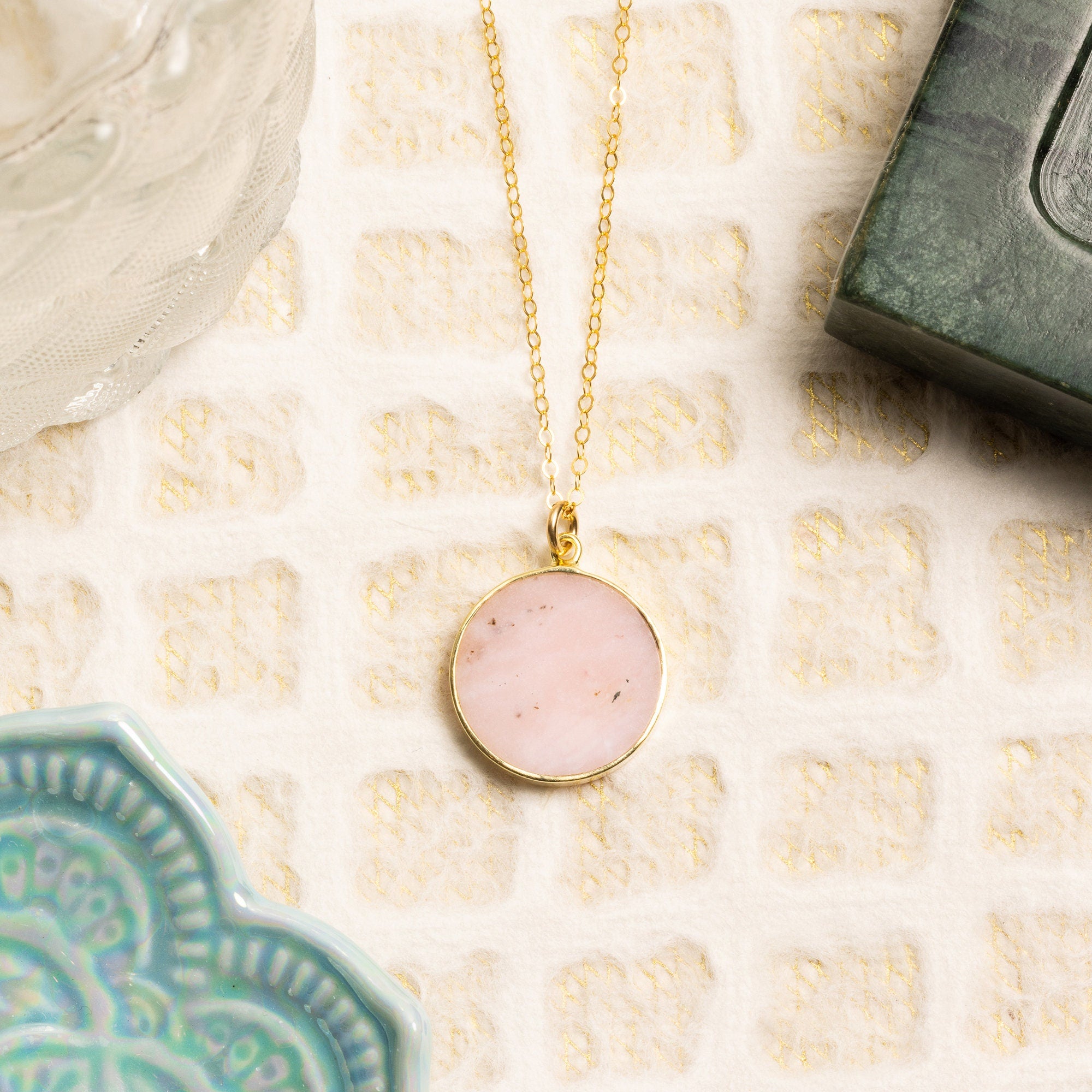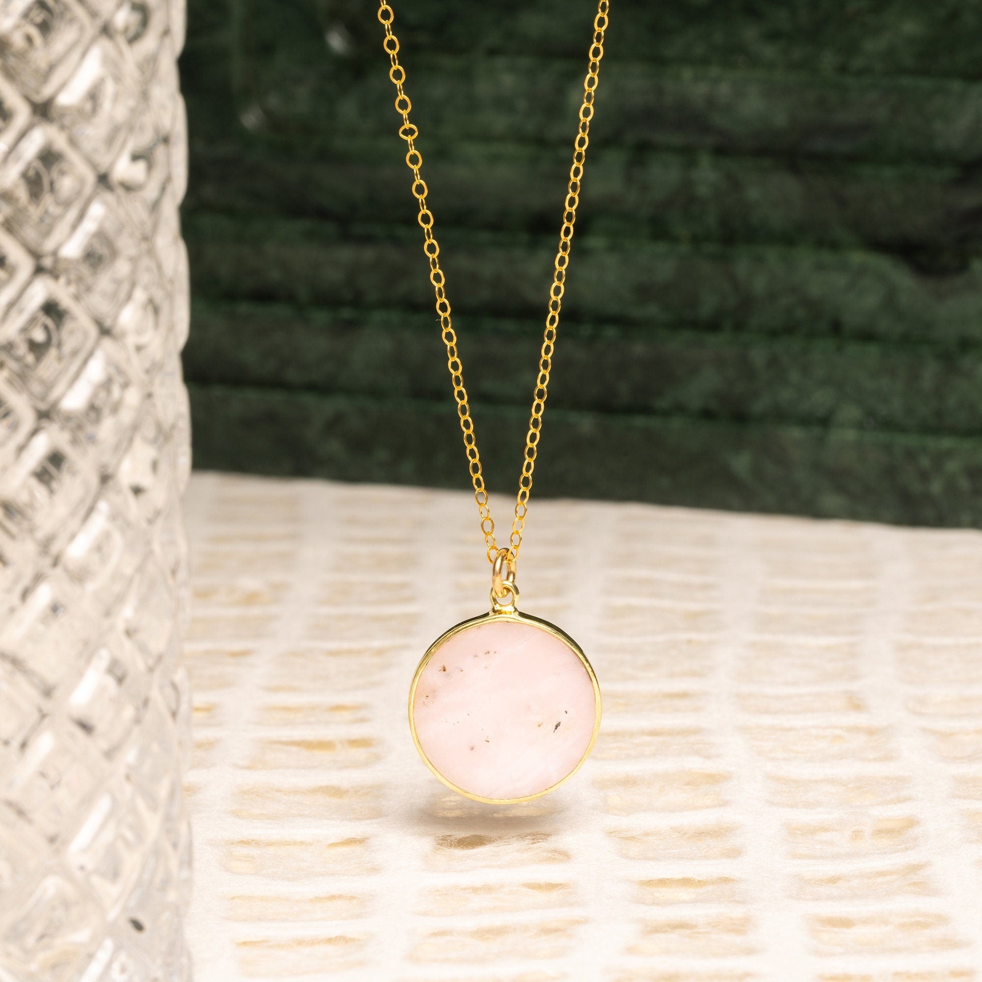 Pink Opal circle necklace on 14k dainty gold filled chain - Minimalist Jewelry gifts for her, mom, wife, daughter - Pink and gold gemstones