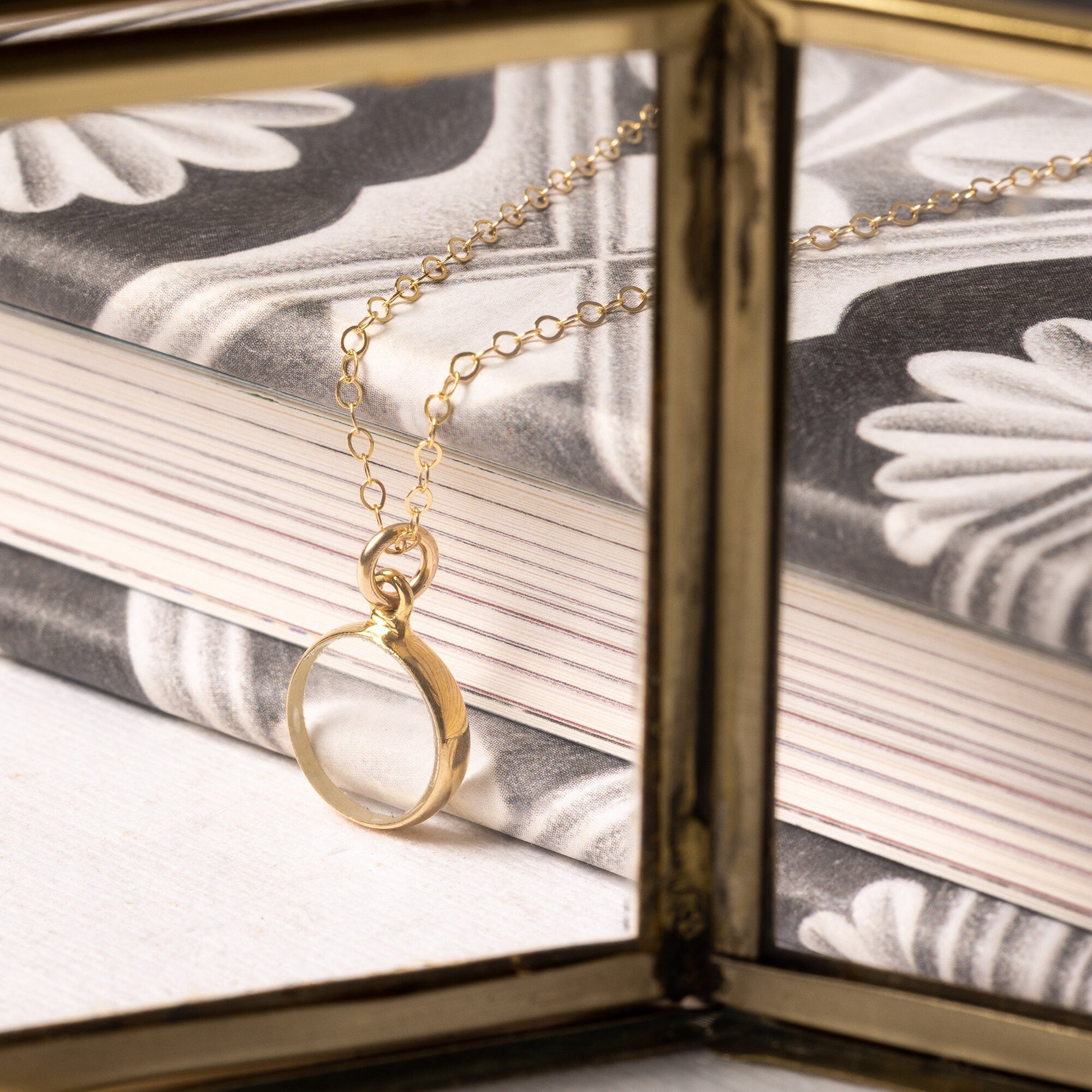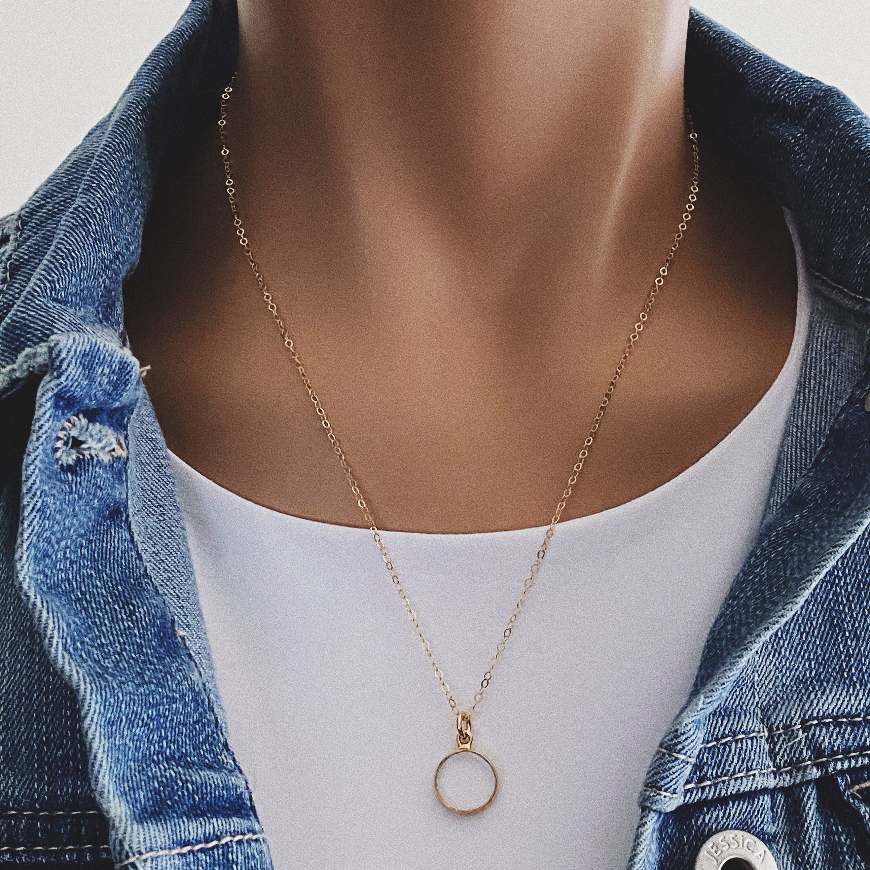 Quartz Small Disc Necklace Delicate chain with gold bezel round genuine quartz pendant - Present for mom, wife, daughter, niece, best friend