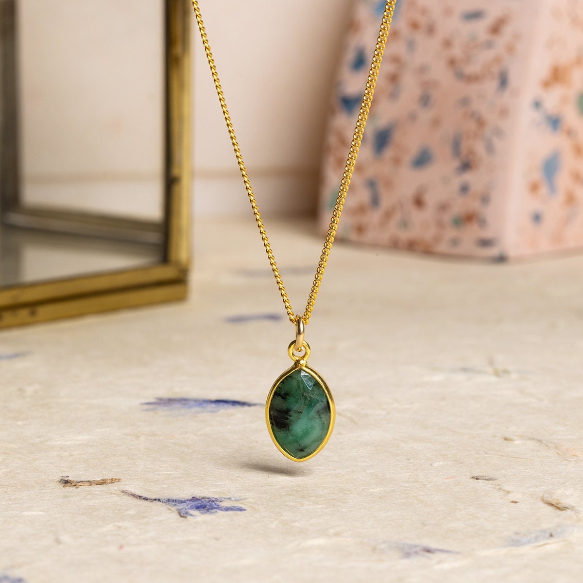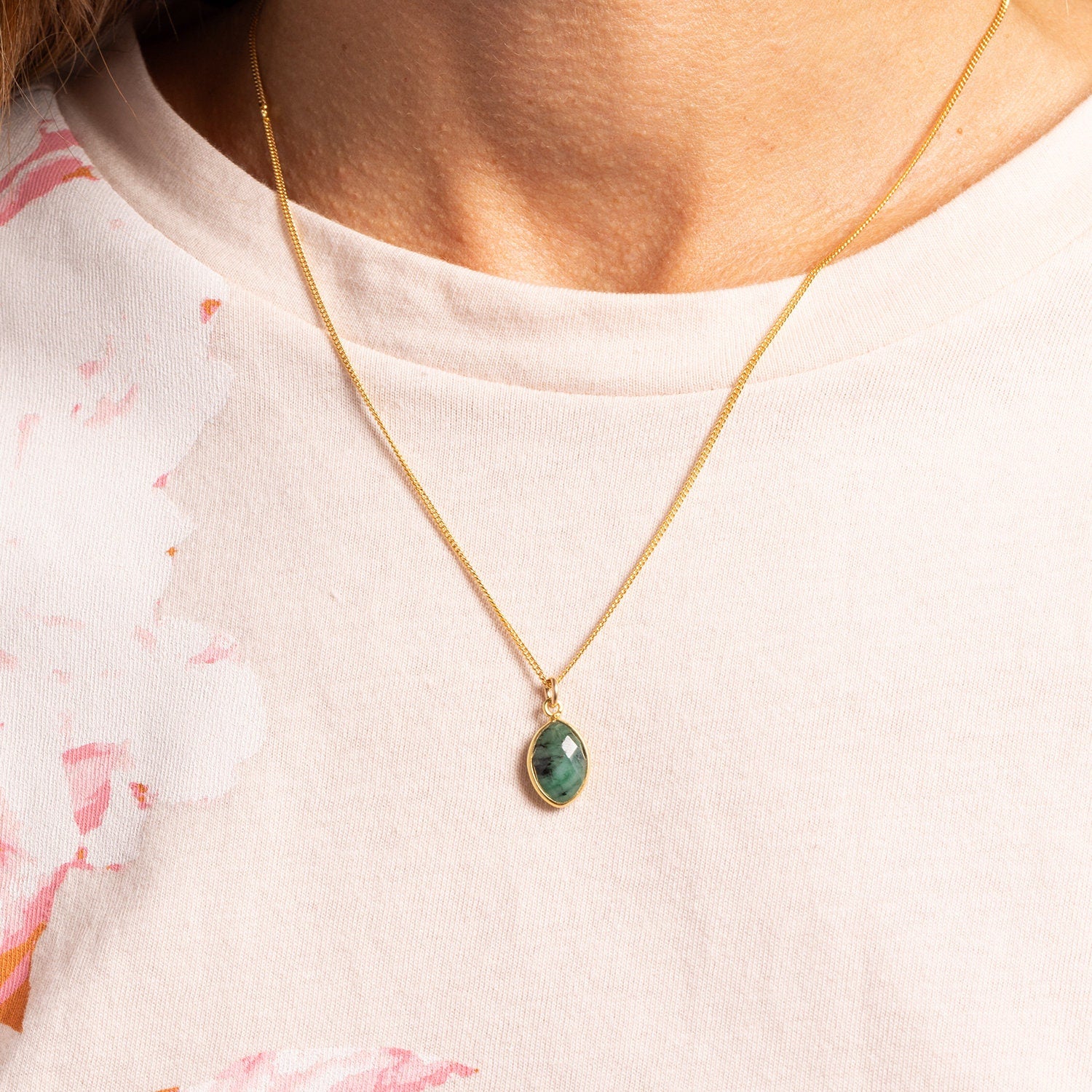 Raw Emerald Marquise Cut Drop Pendant Gold Necklace 14k gold filled curb chain - May Birthstone gem necklace, classic jewelry for her, mom