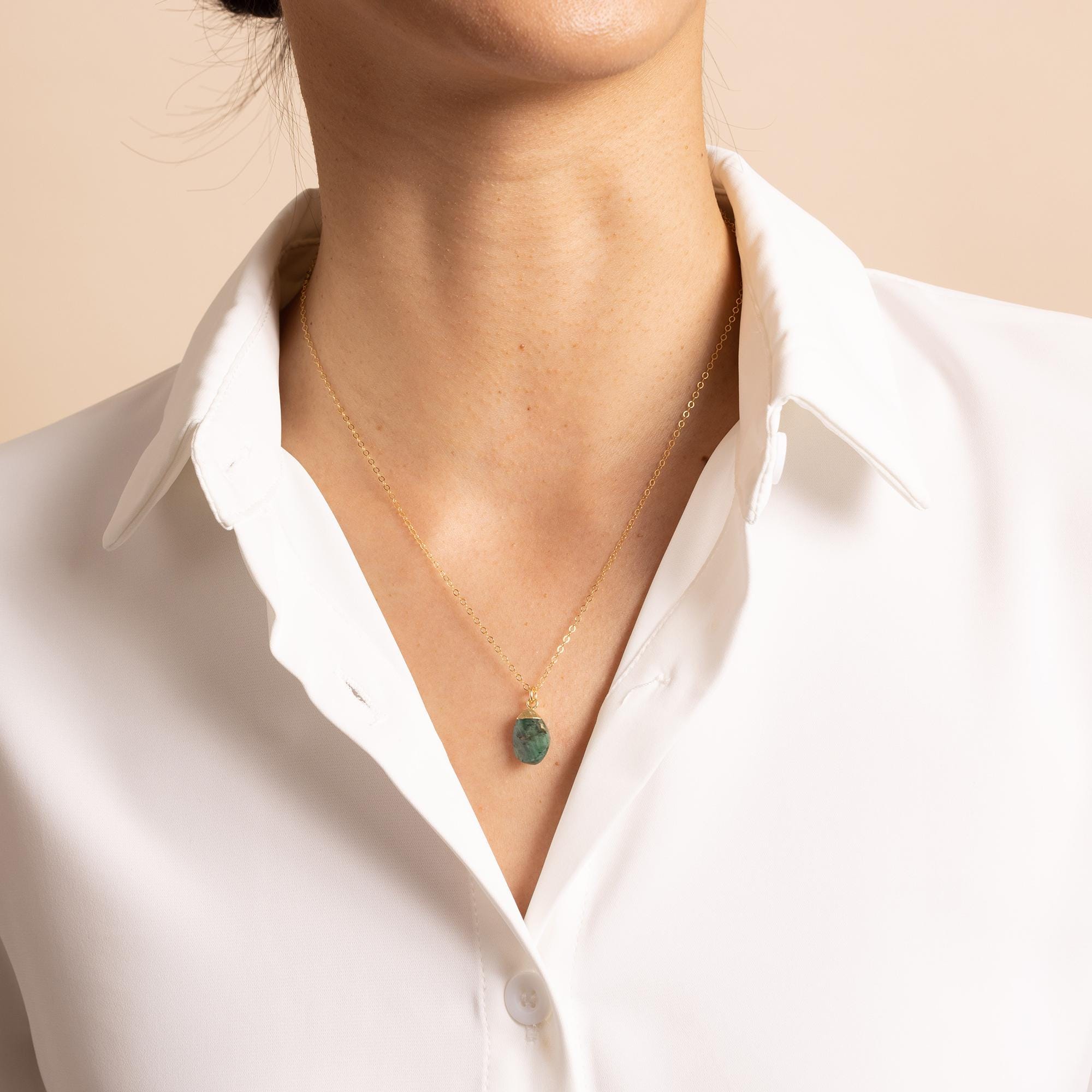 Raw Emerald Necklace/ Gold Oval Pebble Style Drop Pendant Necklace on dainty 14k gold filled cable chain / Jewelry Gifts for mom, wife