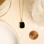 Raw Genuine Black Obsidian Slice Pendant on 14k Gold Filled Chain