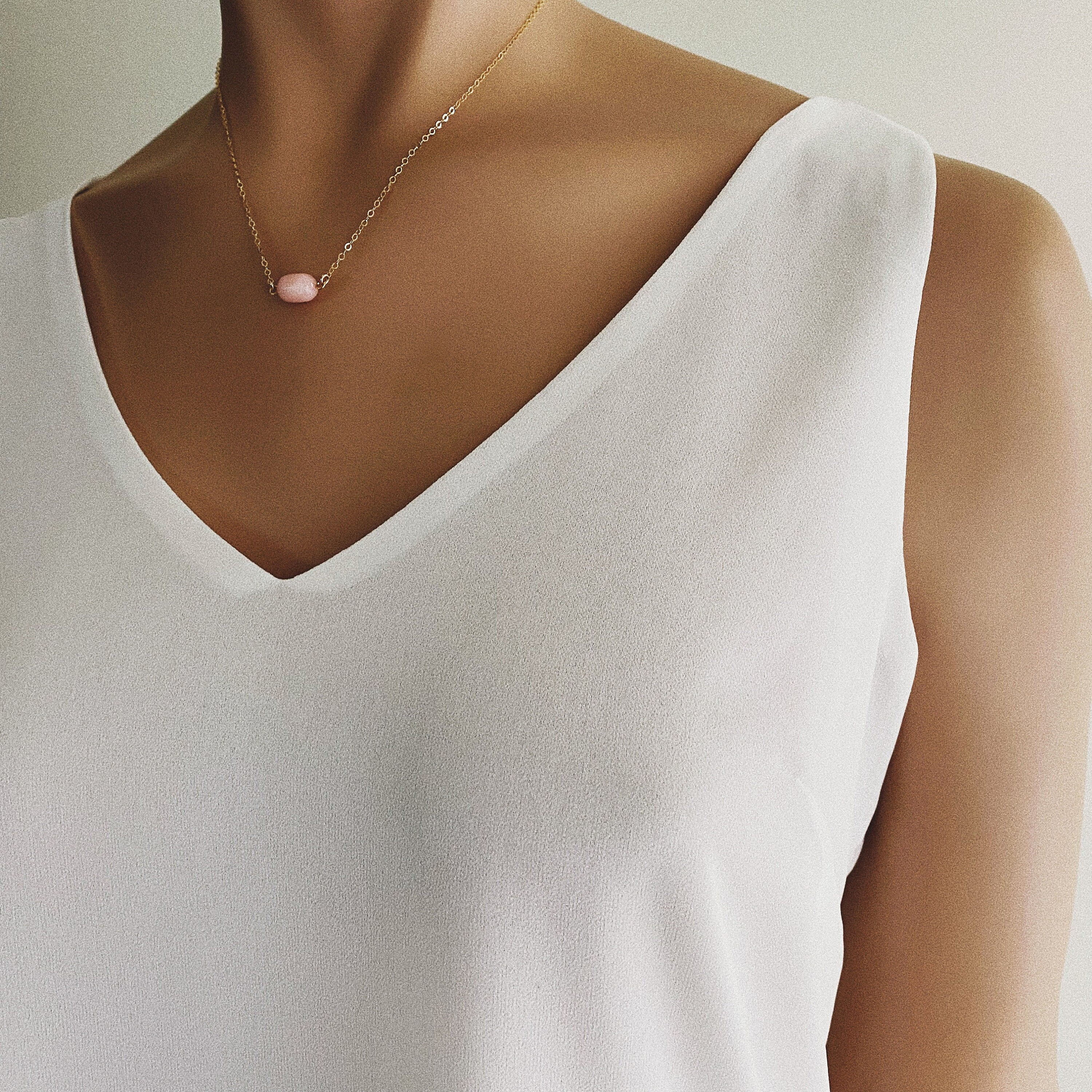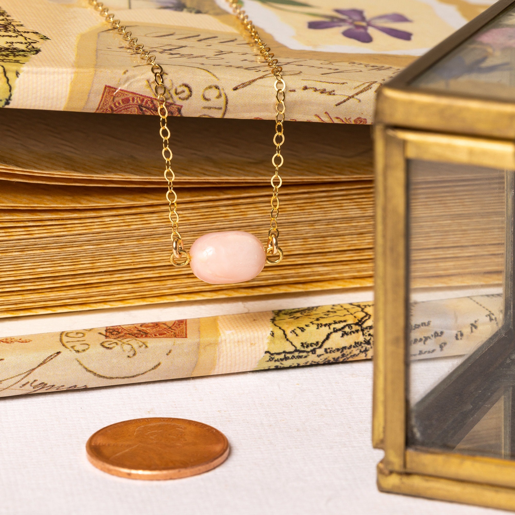 Rose Quartz Gemstone Necklace - Stadium shape - Dainty 16 inch chain 14k gold filled chain minimalist necklace - Jewelry gifts for her, mom