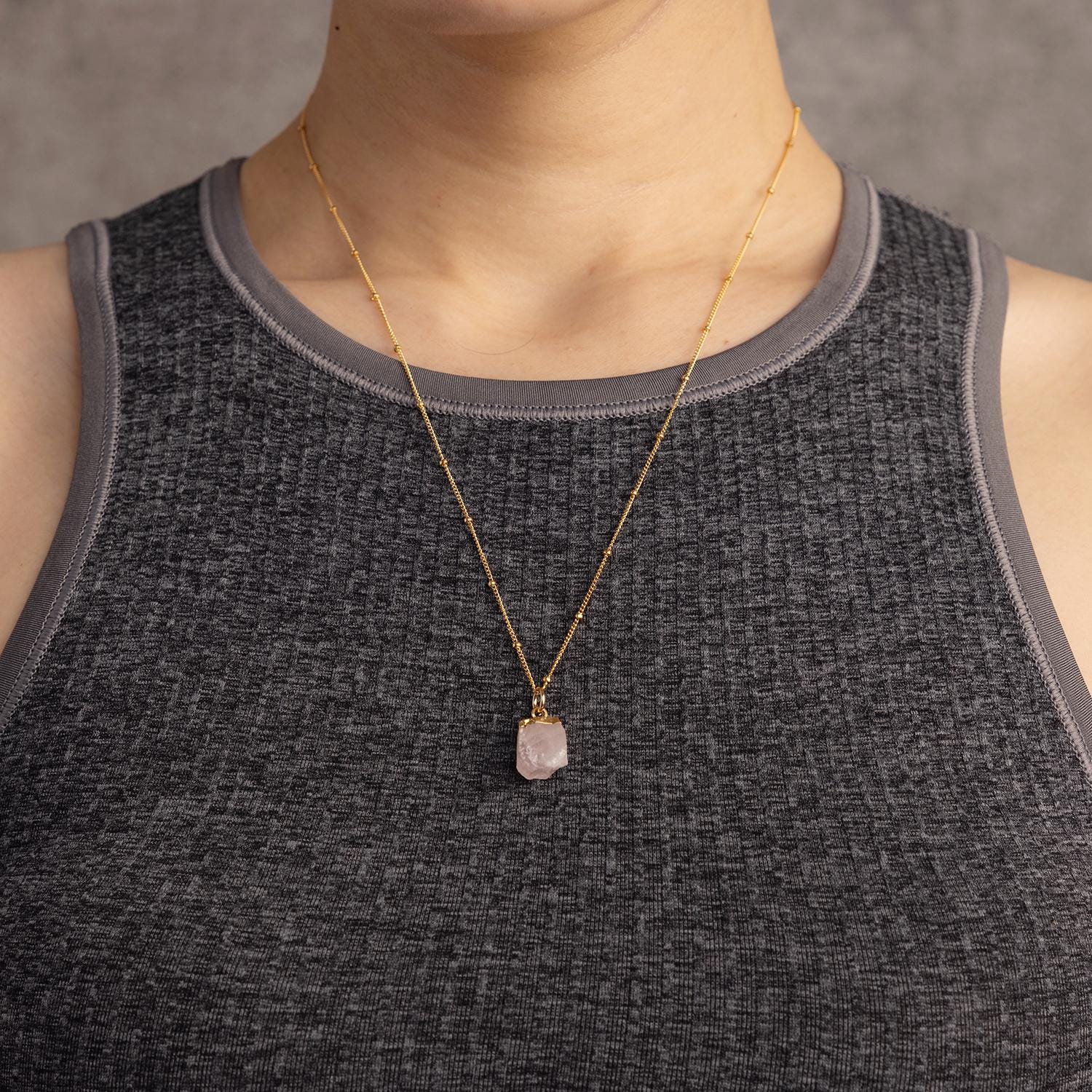 Rose Quartz Pendant Necklace on 14k Gold Filled Satellite Chain