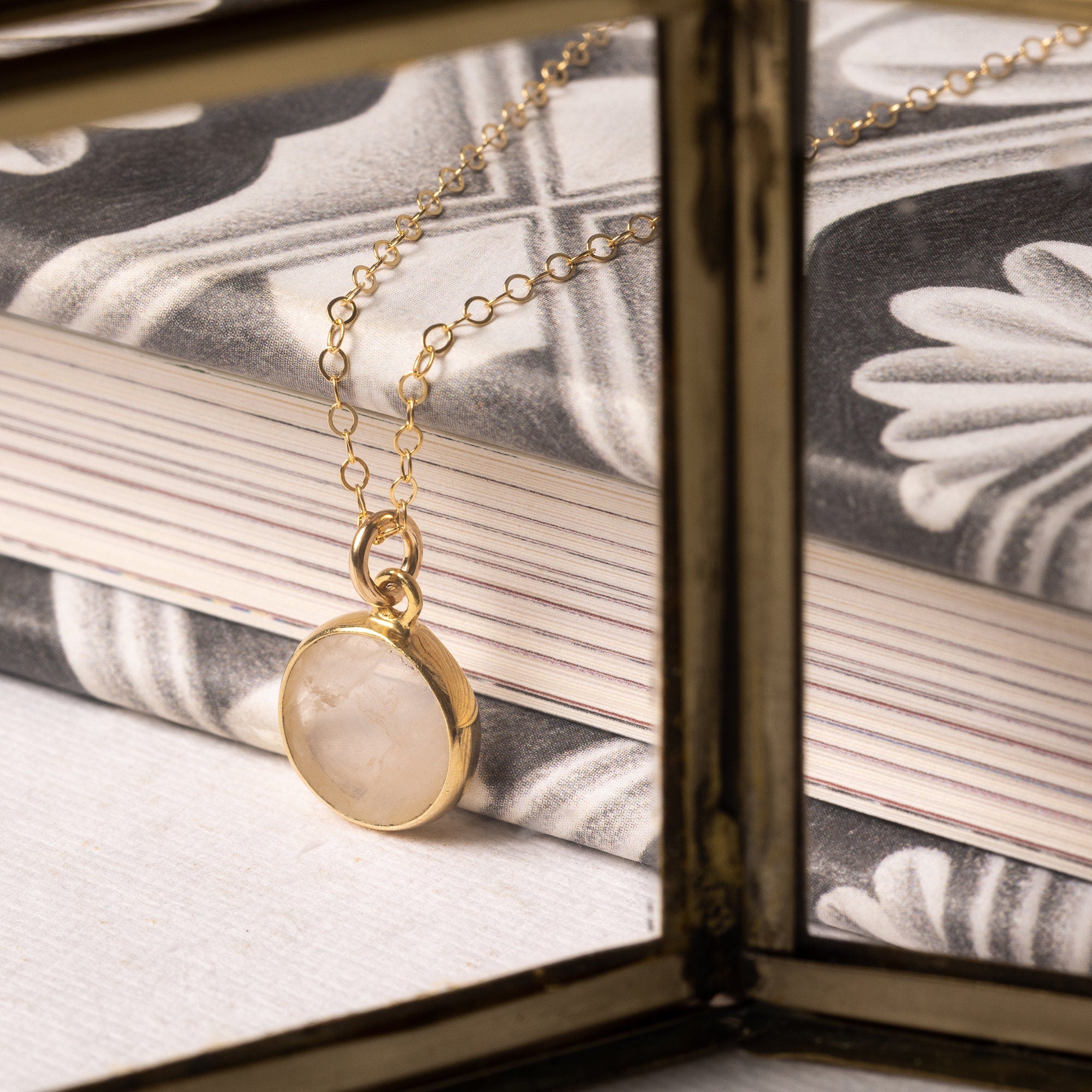 Rose Quartz Small Circle Disc Pendant Necklace - Gorgeous gold and pink jewelry gift for women - Petite, Dainty and elegant necklace for her