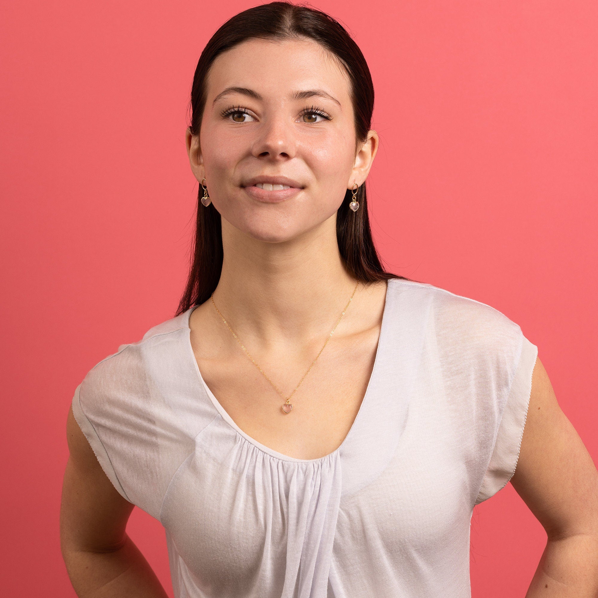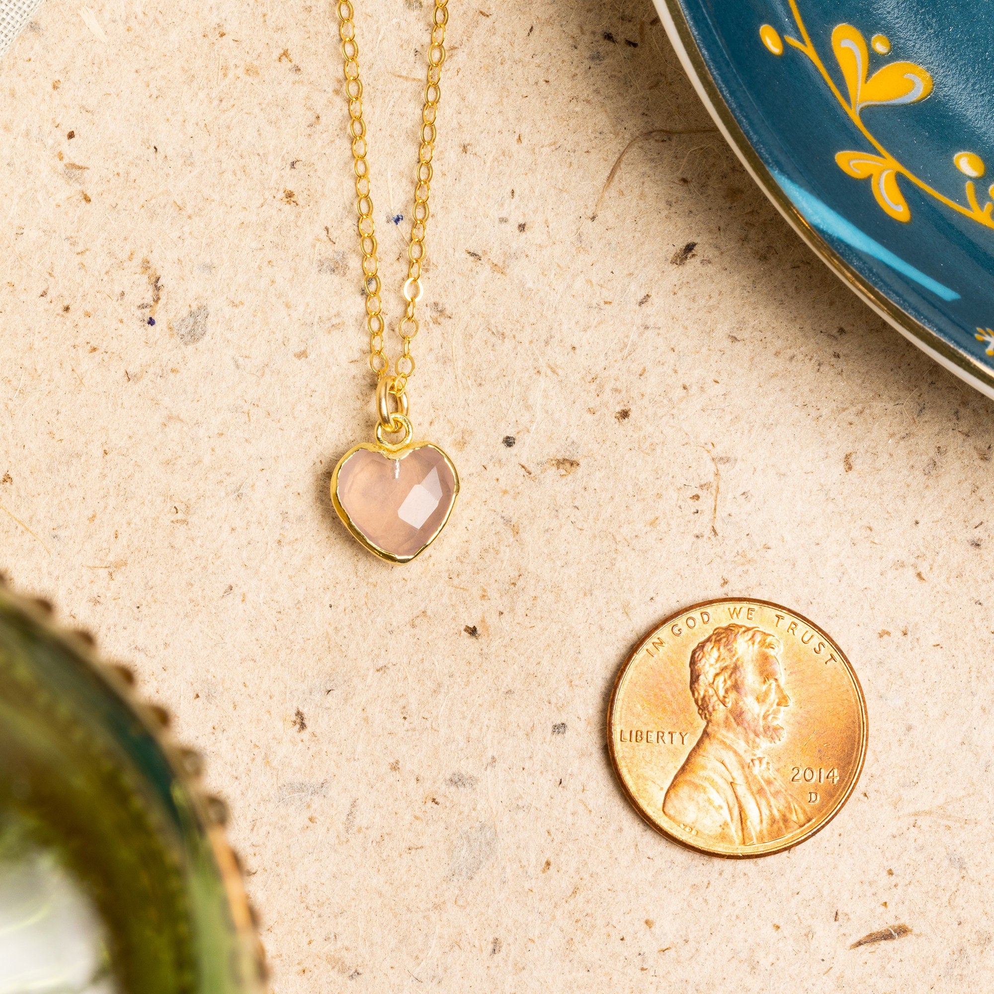 Rose Quartz Small Heart Pendant - Gemstone 14K gold filled dainty chain - Minimalist, Romantic, Love Jewelry for her, wife, girlfriend
