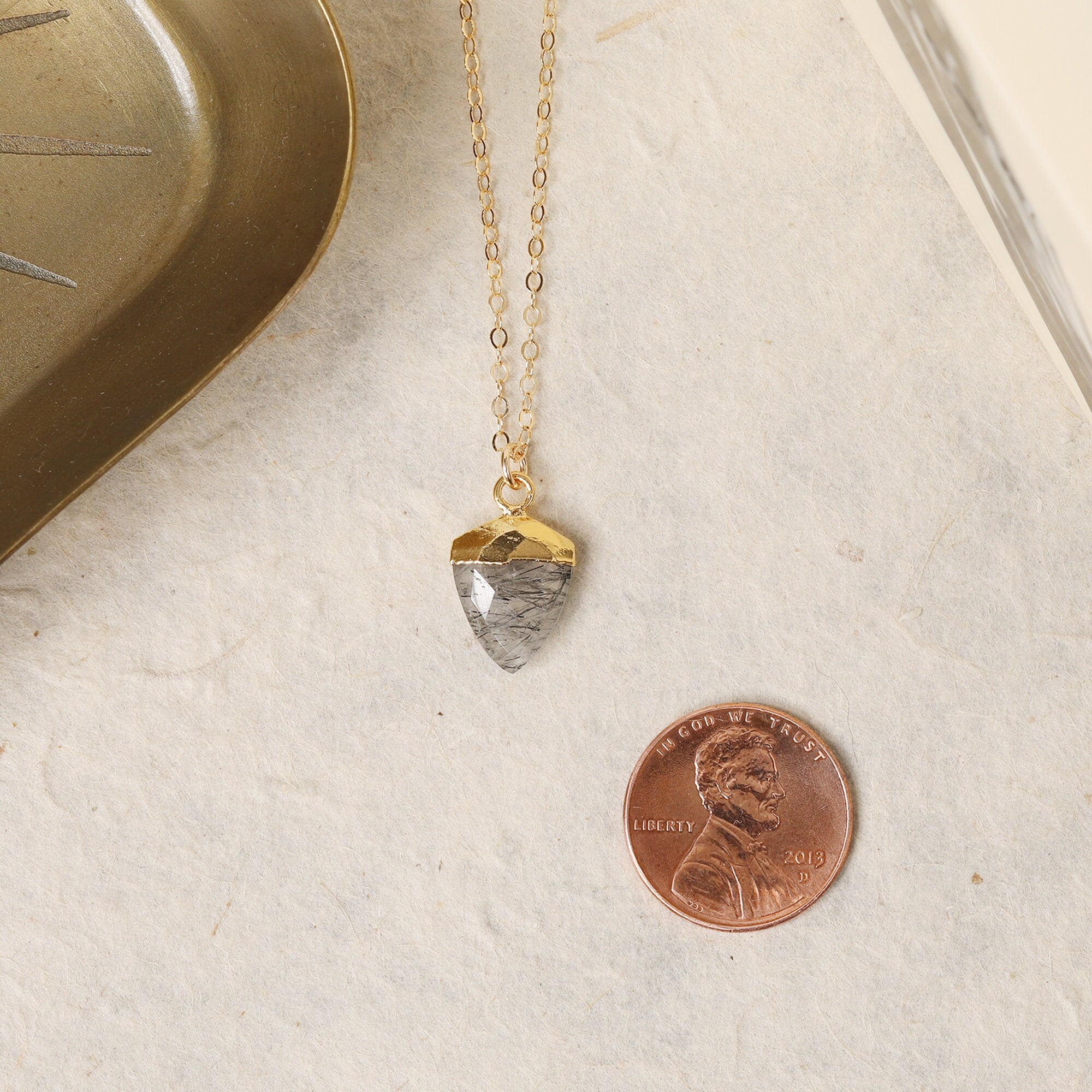 Rutilated Quartz Shield Shape Charm pendant on 14k gold filled minimalist chain - Jewelry gifts for Mother's Day, bridesmaids, best friend