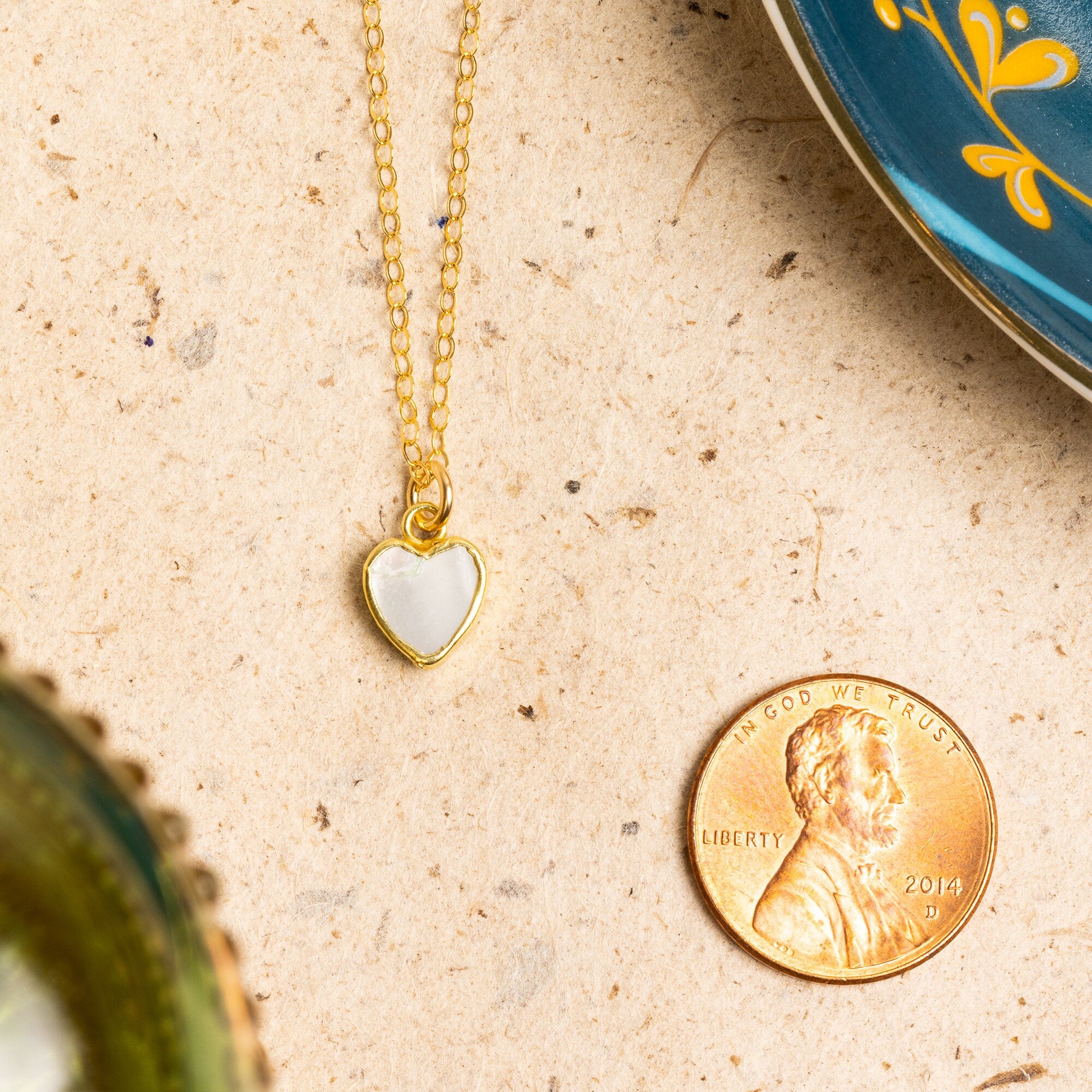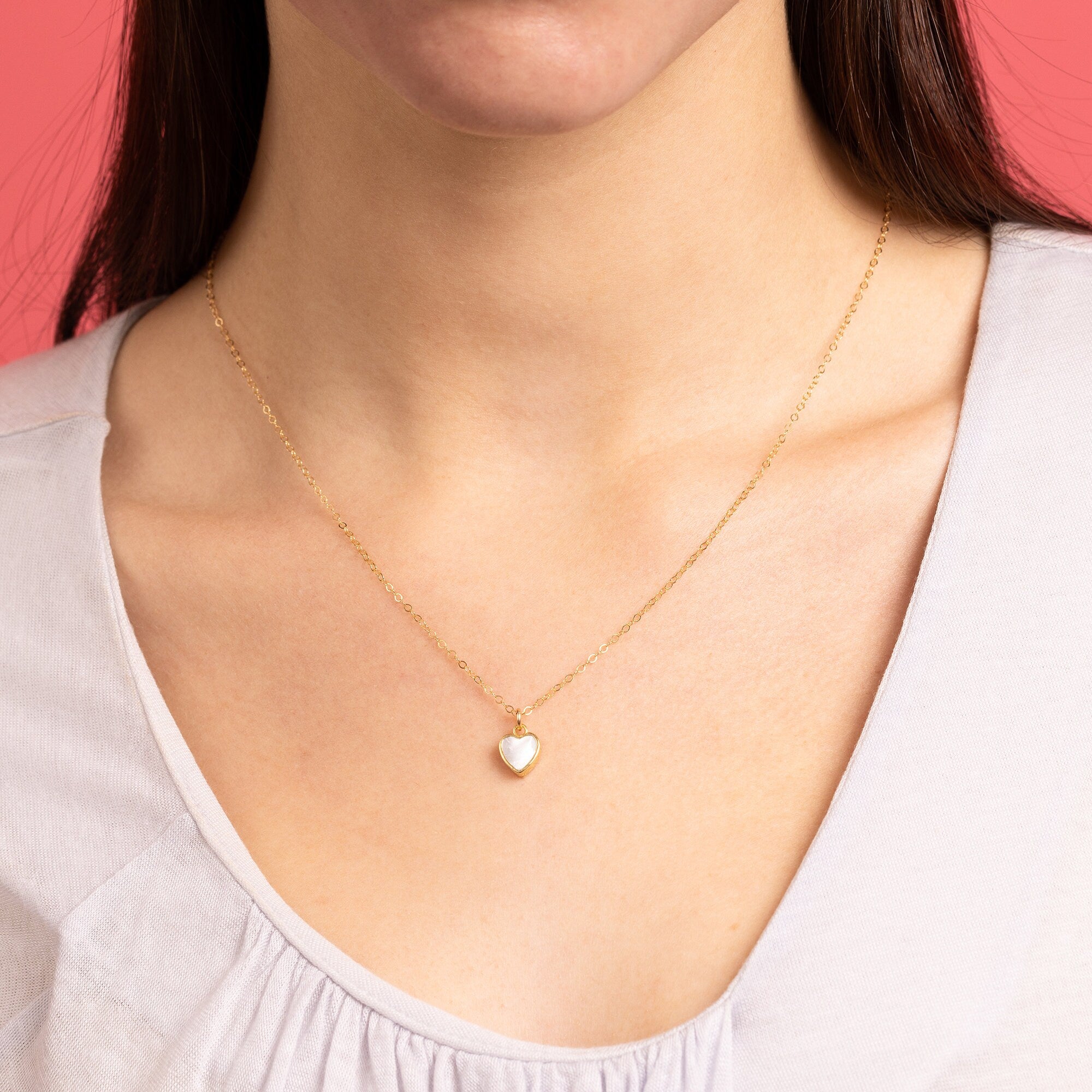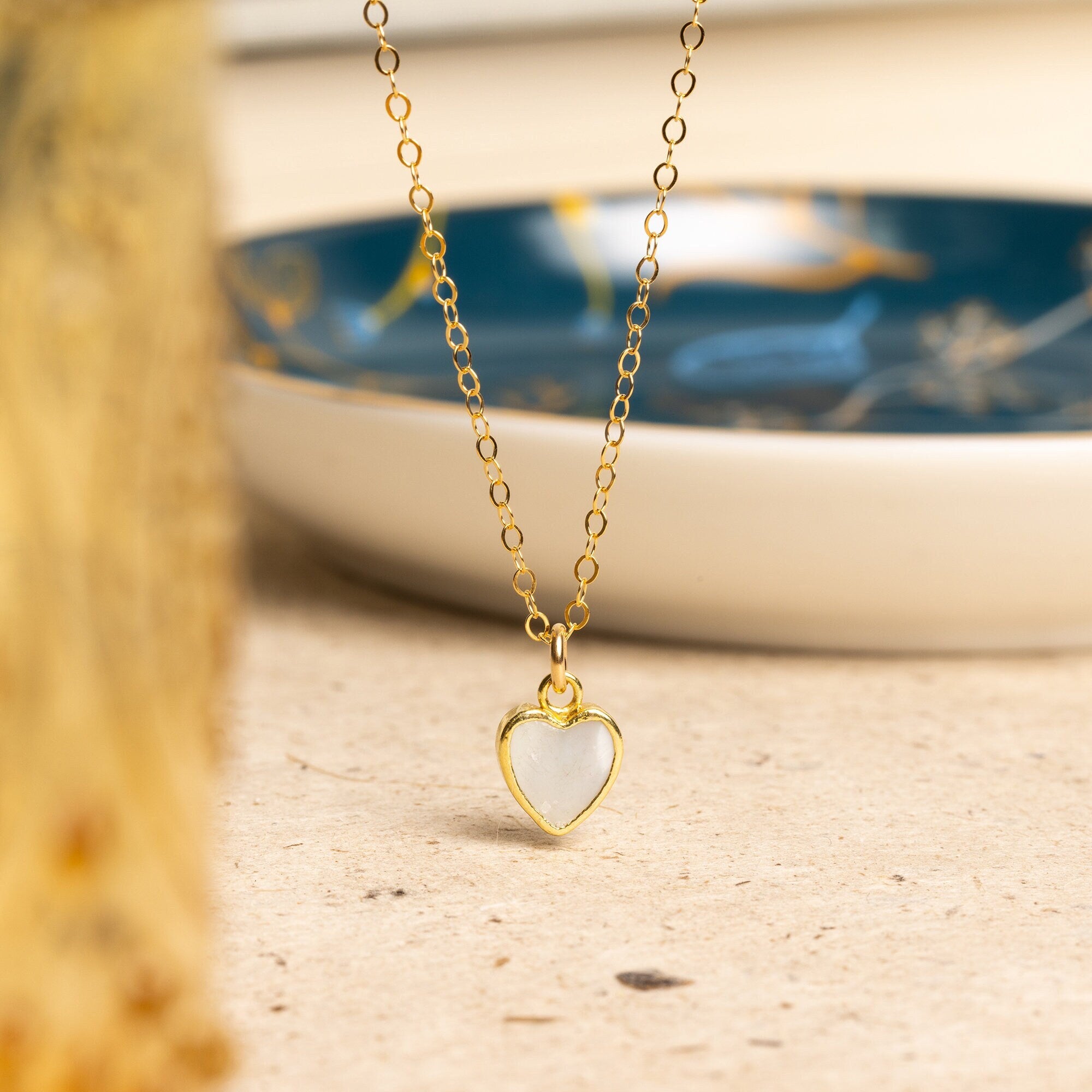 Small Pearl Heart Pendant - Faceted gemstone 14K gold filled dainty chain - Minimalist, Romantic, Love Jewelry for her, wife, girlfriend