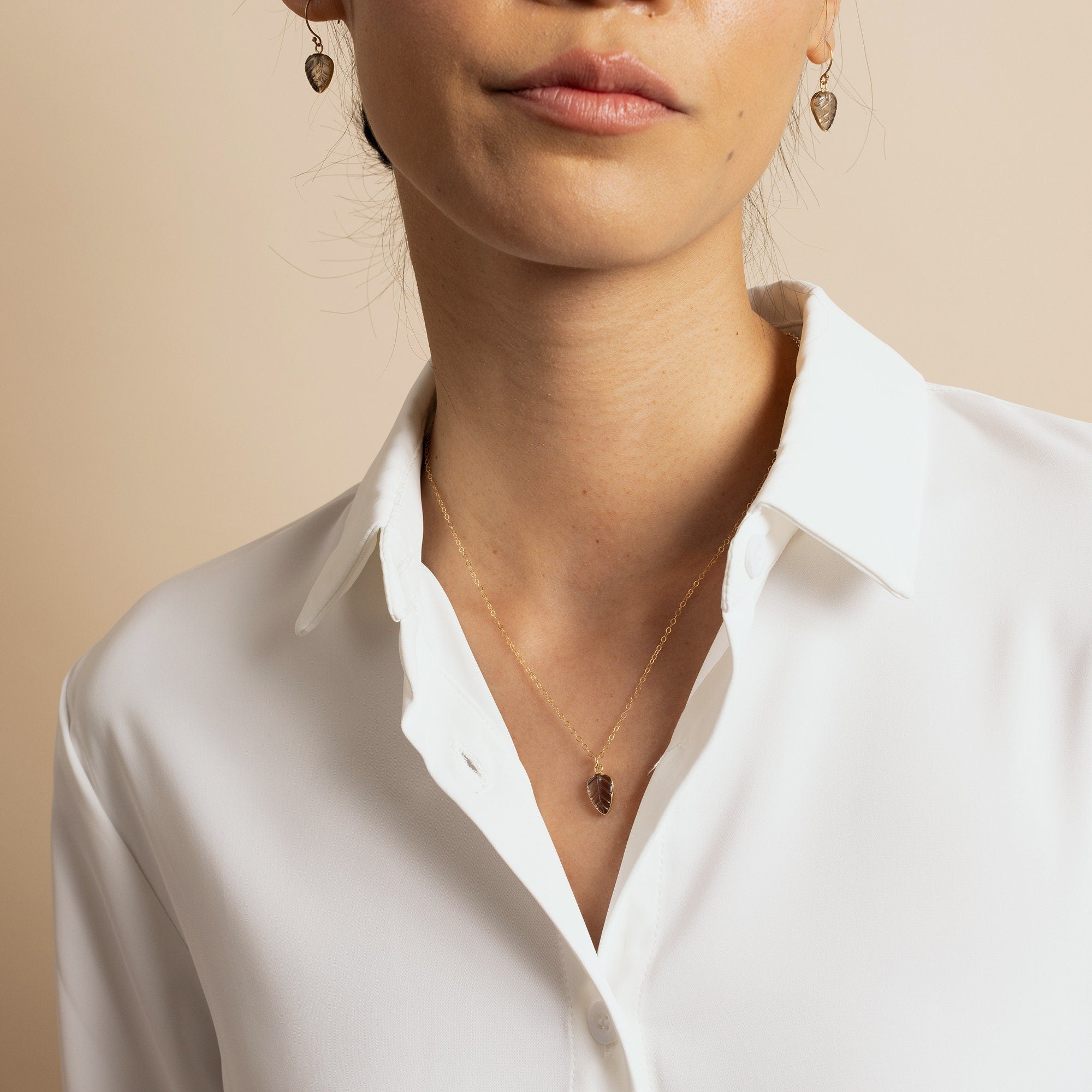 Smokey Quartz Necklace - Handmade leaf shaped gemstone with vermeil gold bezel on 14k gold filled chain - dainty, petite jewelry gifts