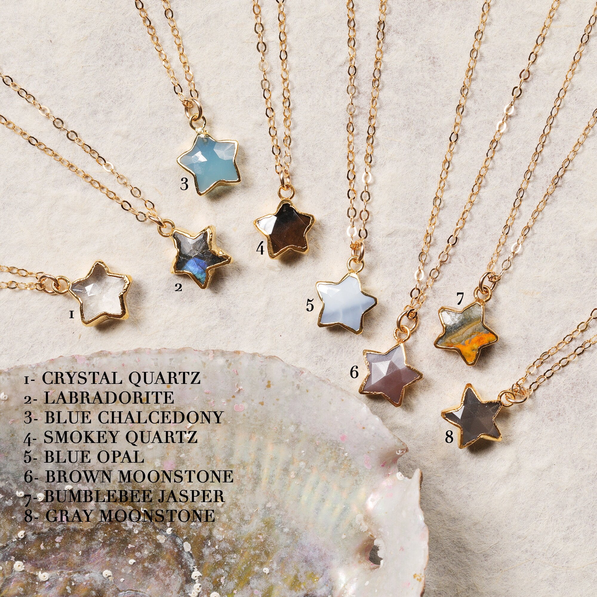 Star necklace - Gemstone star pendant necklace - Gifts for Her - Labradorite, Quartz, Opal, Moonstone, Chalcedony available.