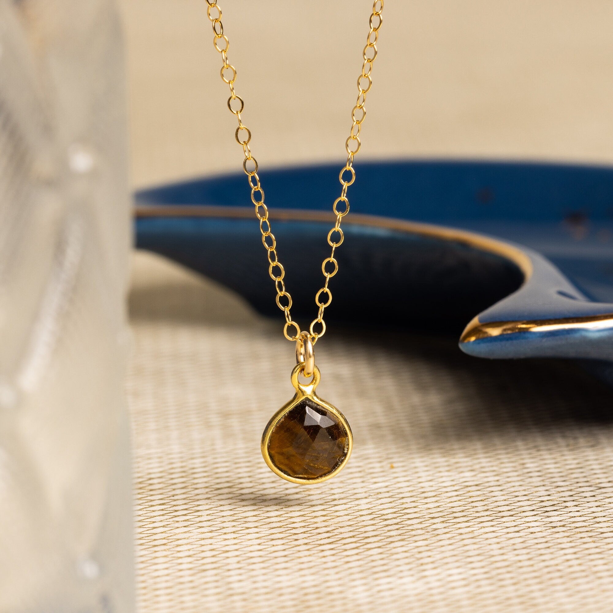 Tiger Eye Teardrop Pendant Gemstone Gold Necklace - Birthday, Graduation Gift Handmade Jewelry for Women, Bridesmaid, Daughter, Graduation