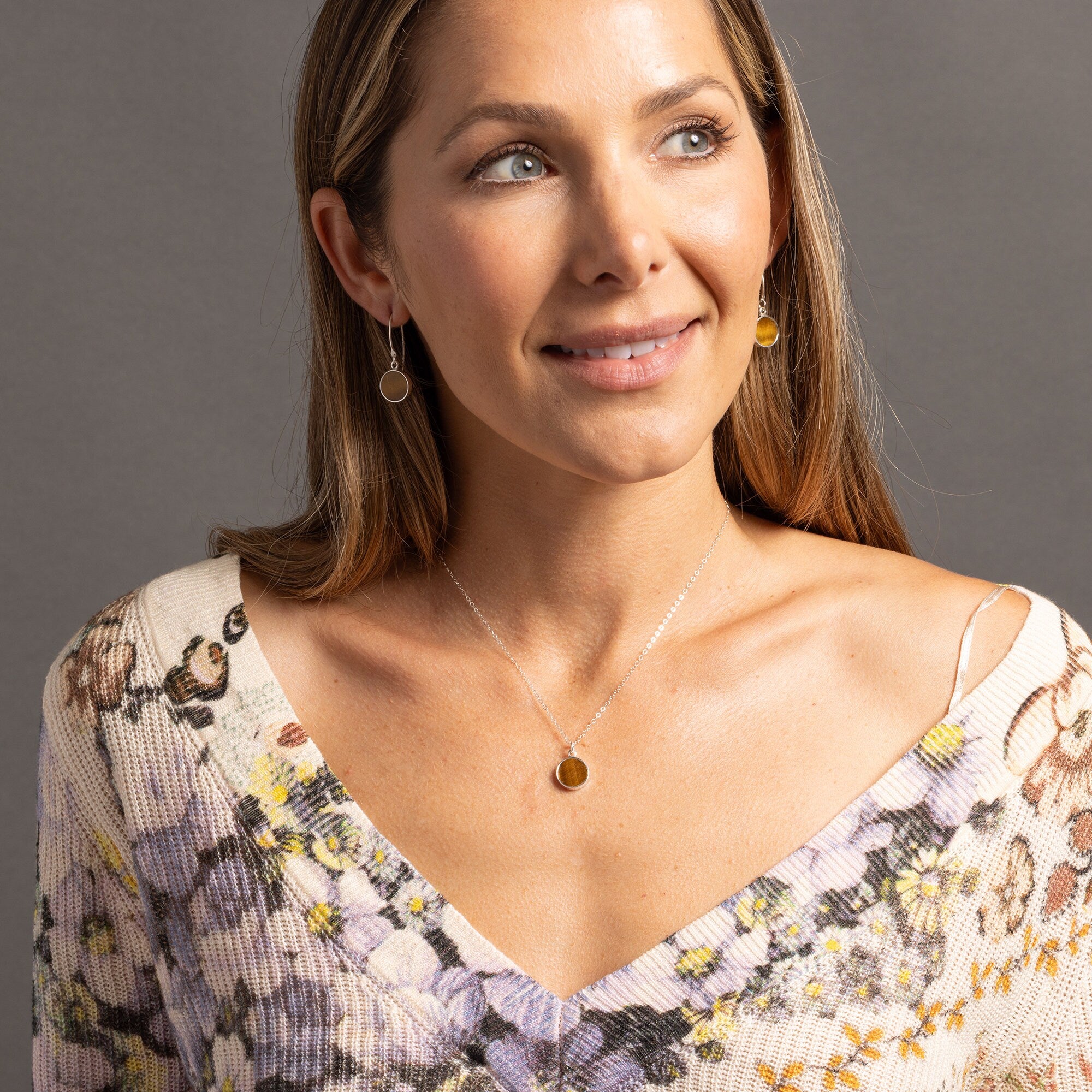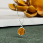 Tiger's Eye 925 Sterling Silver Round Disc Pendant on Dainty Cable Chain - Jewelry Gifts for Mom, wife, sister, handmade gemstone jewelry