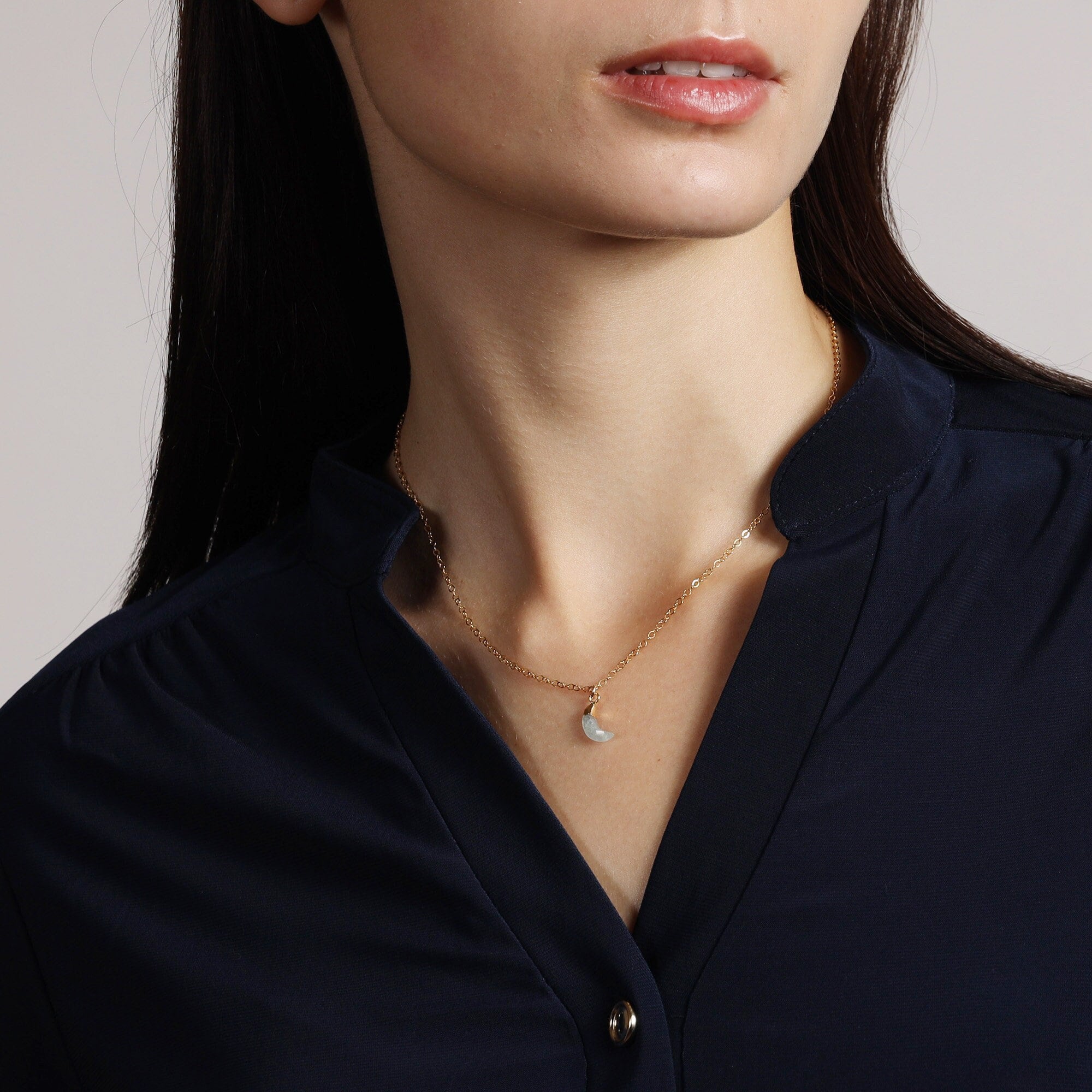 Aquamarine Necklace - Mini Moon Genuine Aquamarine Pendant Necklace on 14k Gold Filled Chain - Gift idea for girlfriend, bride, daughter